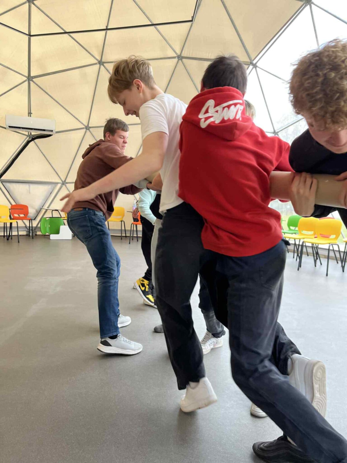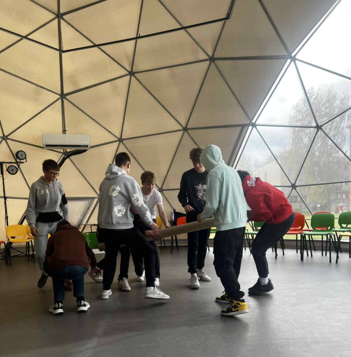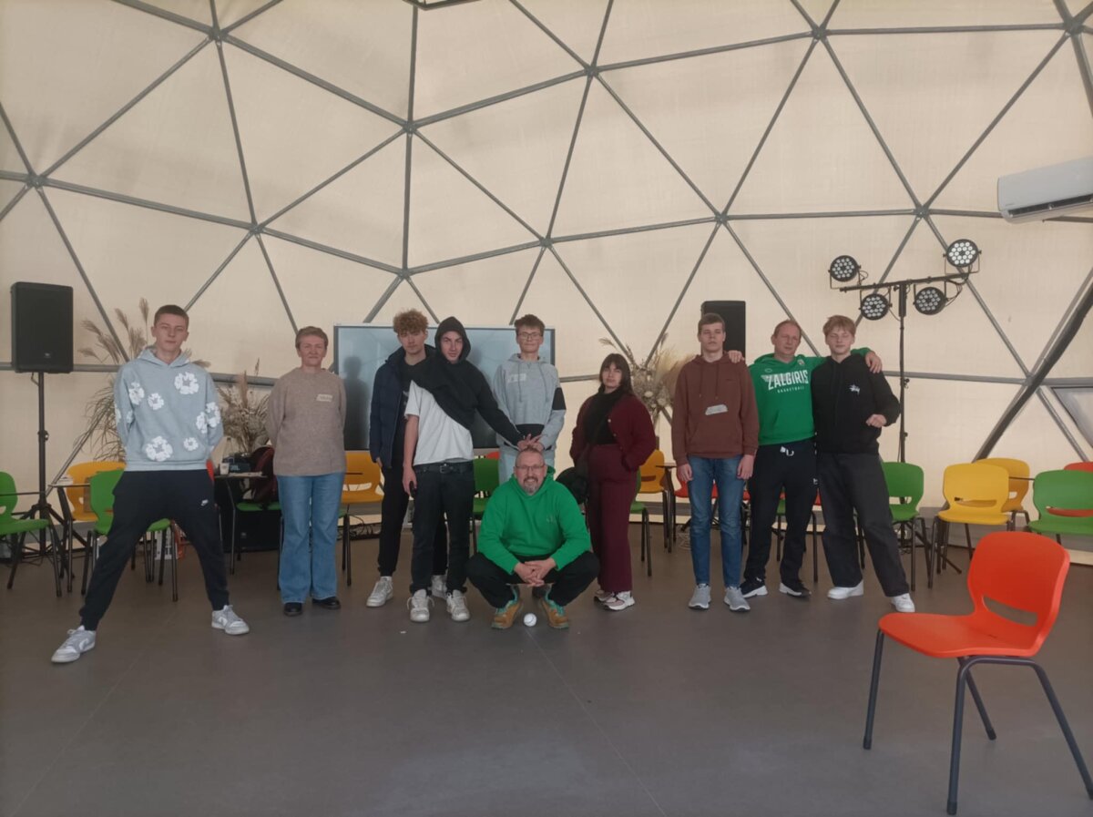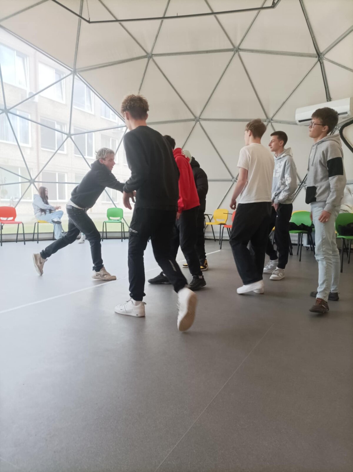 10PM klasė sulaukė svečių iš Jaunimo laisvalaikio centro. Į klasės valandėlę atvyko jau gerai dešimtokams pažįstami jaunimo centro atstovai Vilma ir Žilvinas. Mokyklos kupolo erdvė buvo pilna komandinės dvasios, sportinės kovos, juoko ir noro dalyvauti ir būti komandos dalimi. Puikiai Vilmos ir Žilvino organizuotos veiklos nepaliko abejingų ir dvi pamokos pralėkė nepastebimai. Buvo labai smagu ir malonu matyti į veiklas taip noriai ir entuziastingai įsitraukusius dešimtokus.
