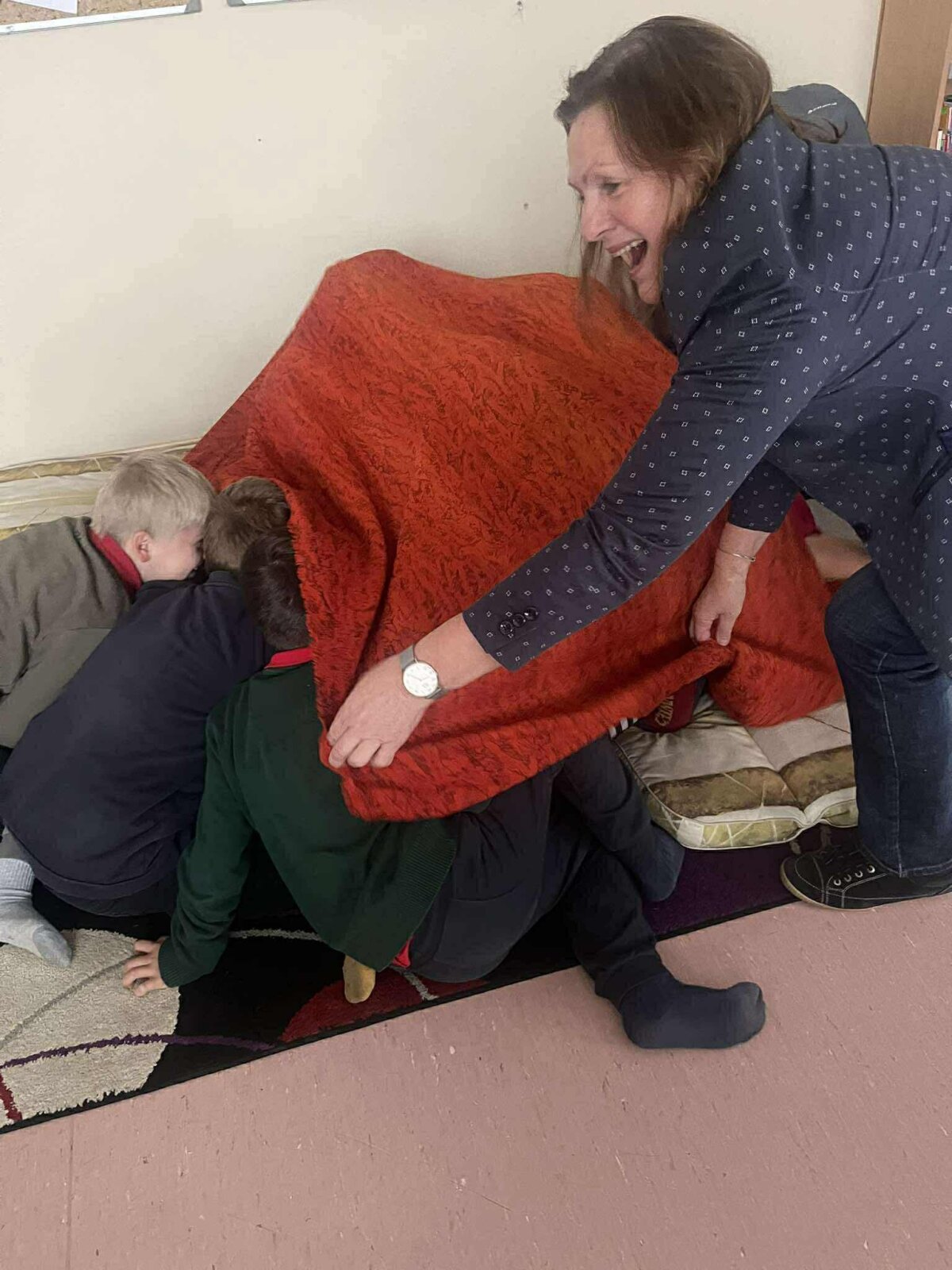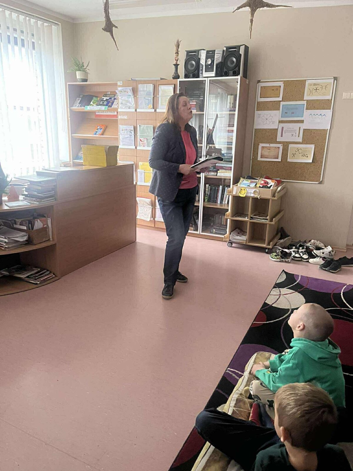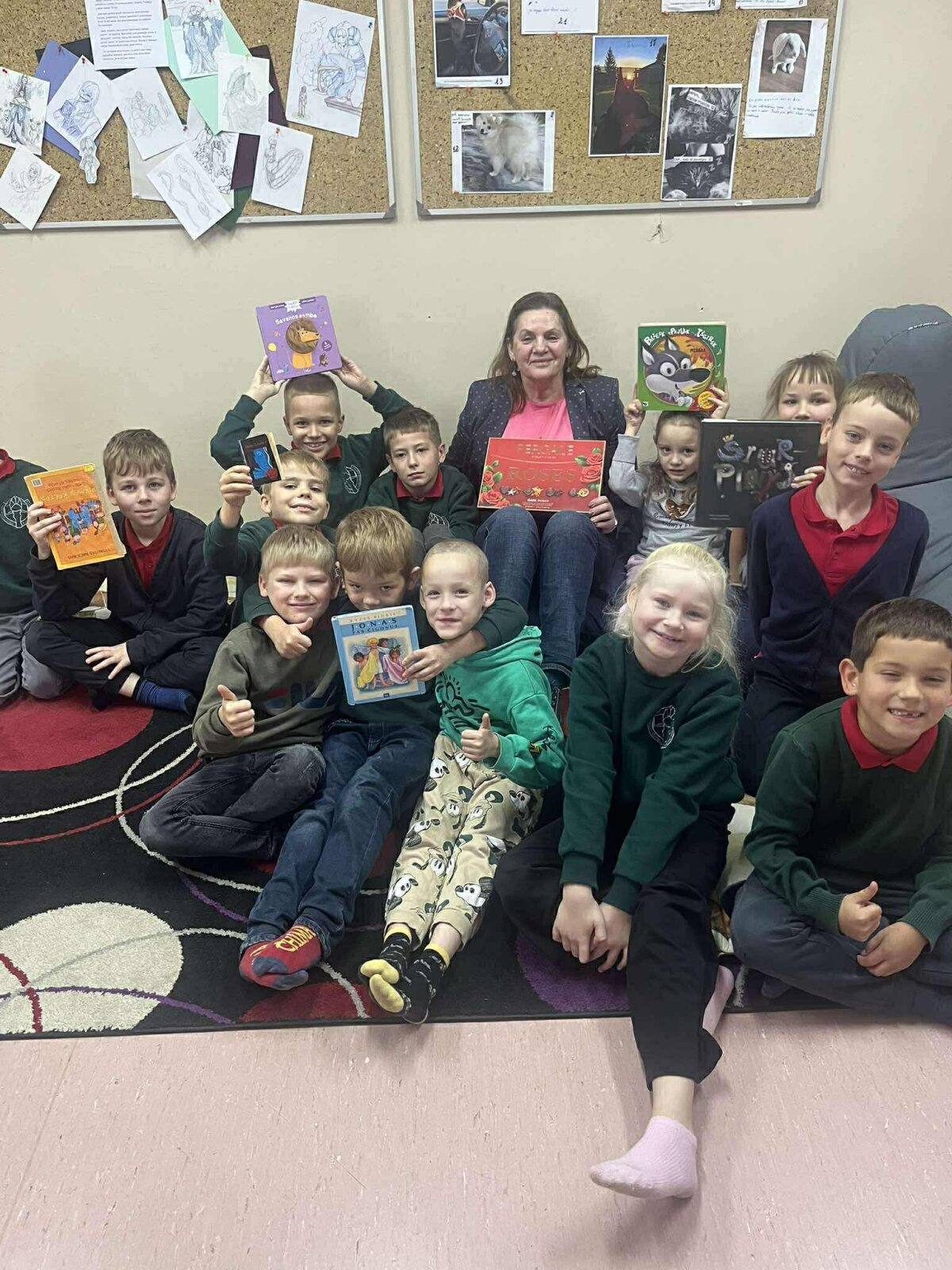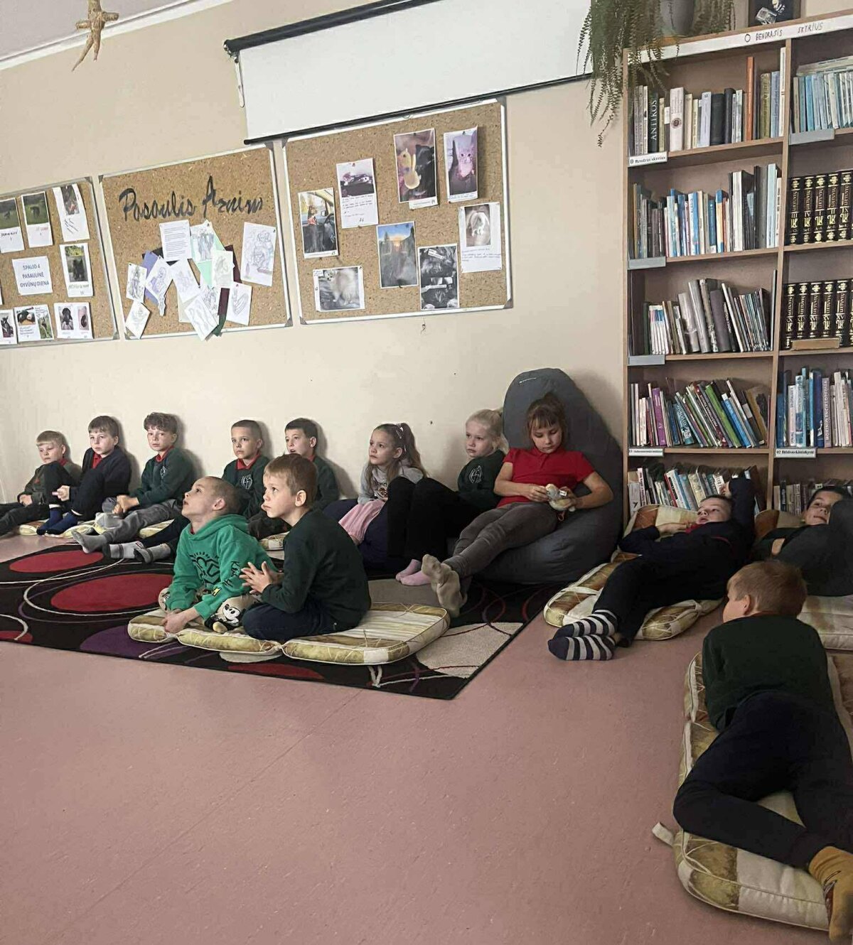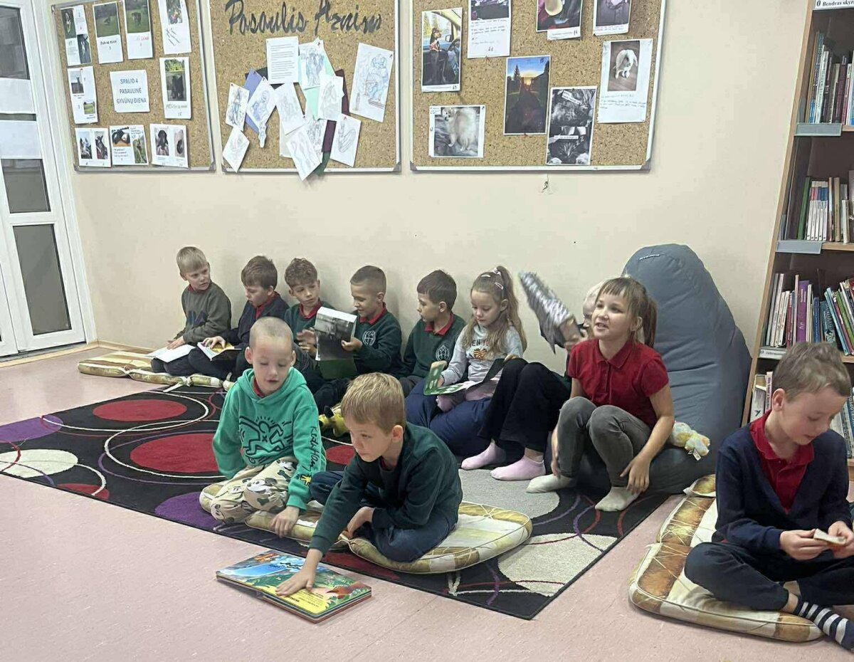 1a klasės mokiniai su mokytoja Rasa Piešinaite klausėsi latvių pasakos „Kiškis i... -