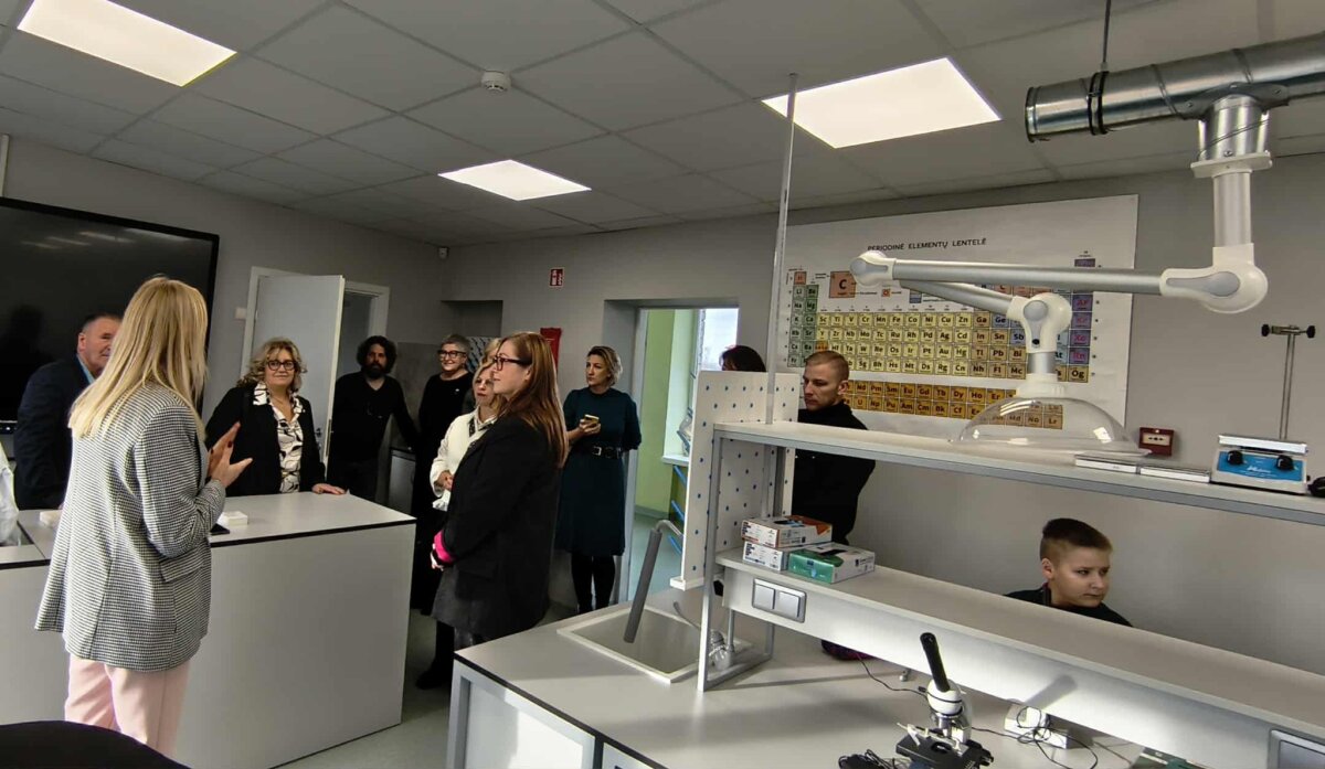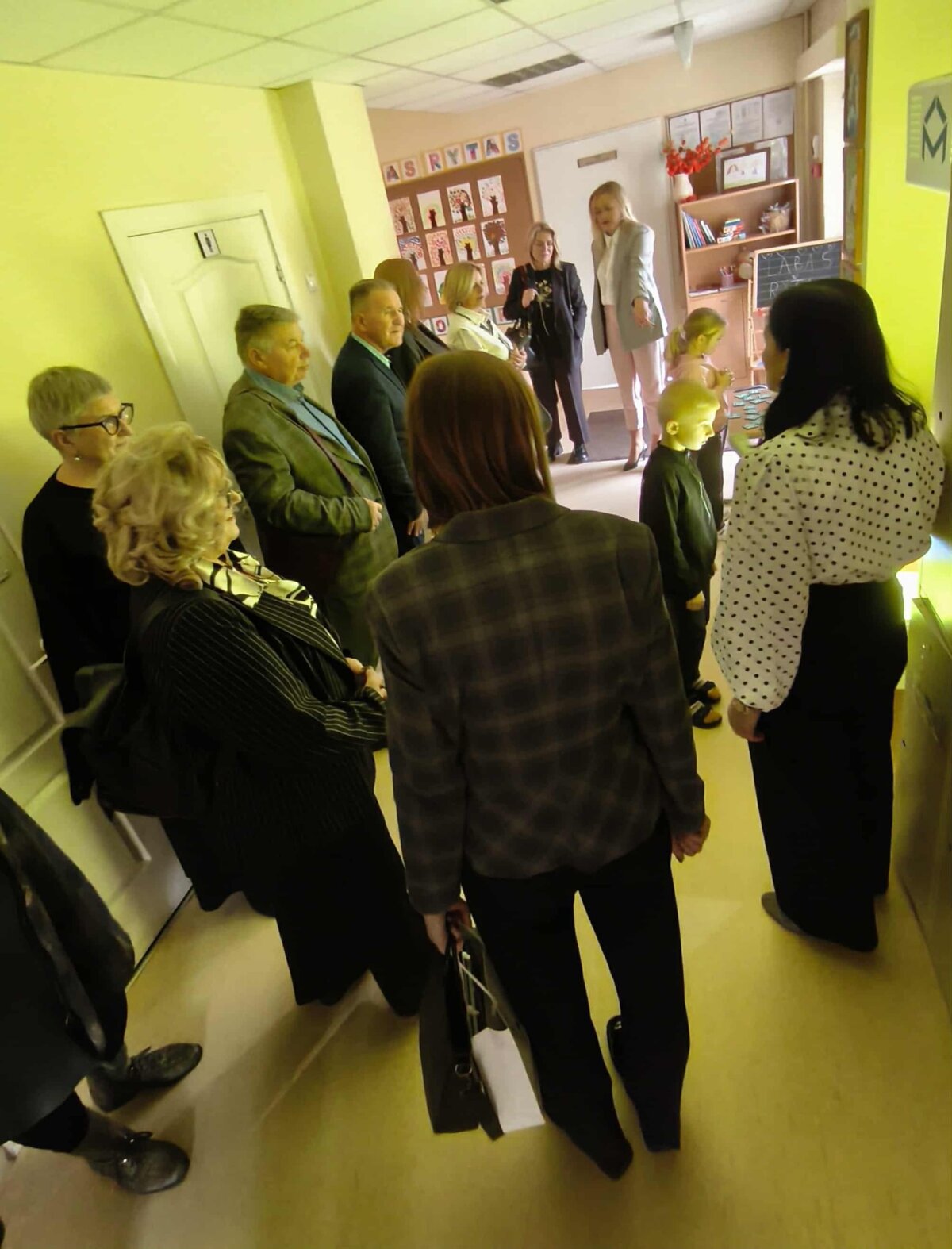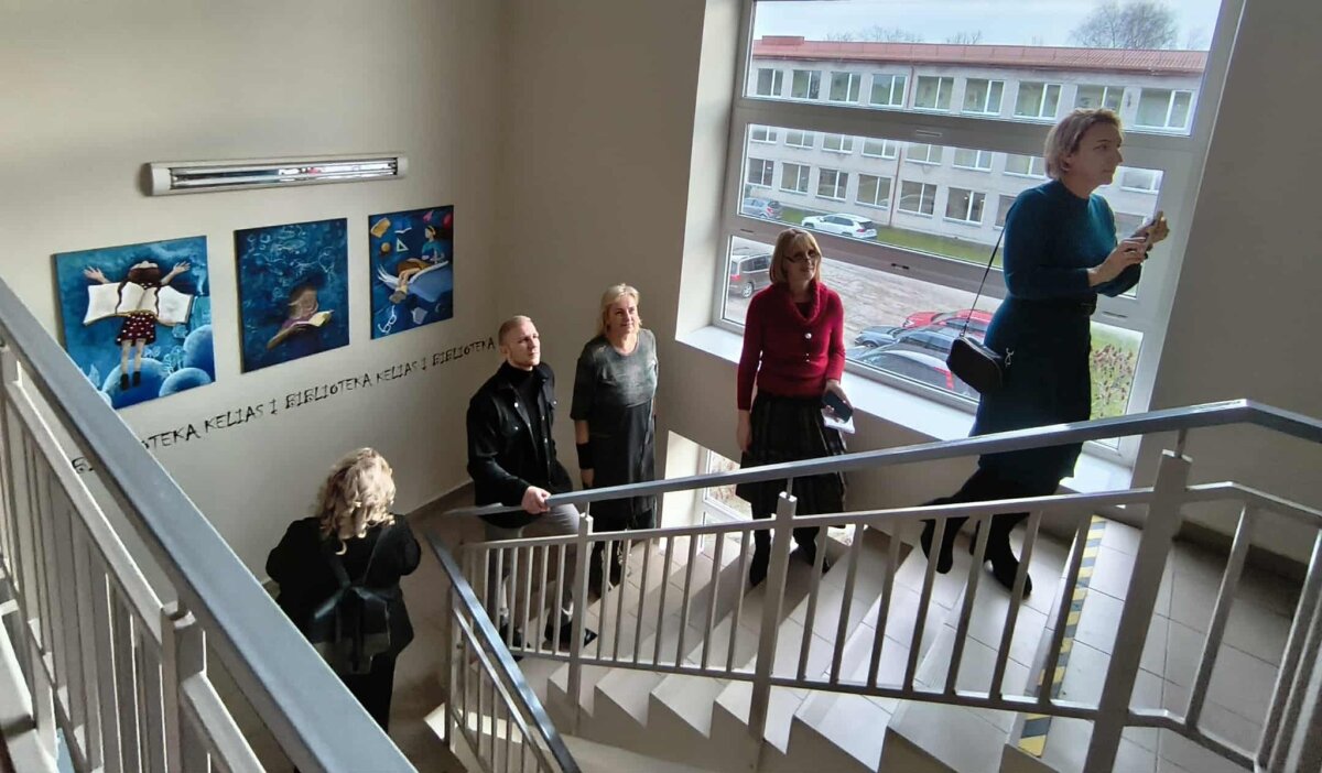 Mokyklos direktorė svečiams pristatė naujai įrengtas erdves, kurios skatina visapusišką mokinių tobulėjimą, kūrybiškumą ir bendradarbiavimą.