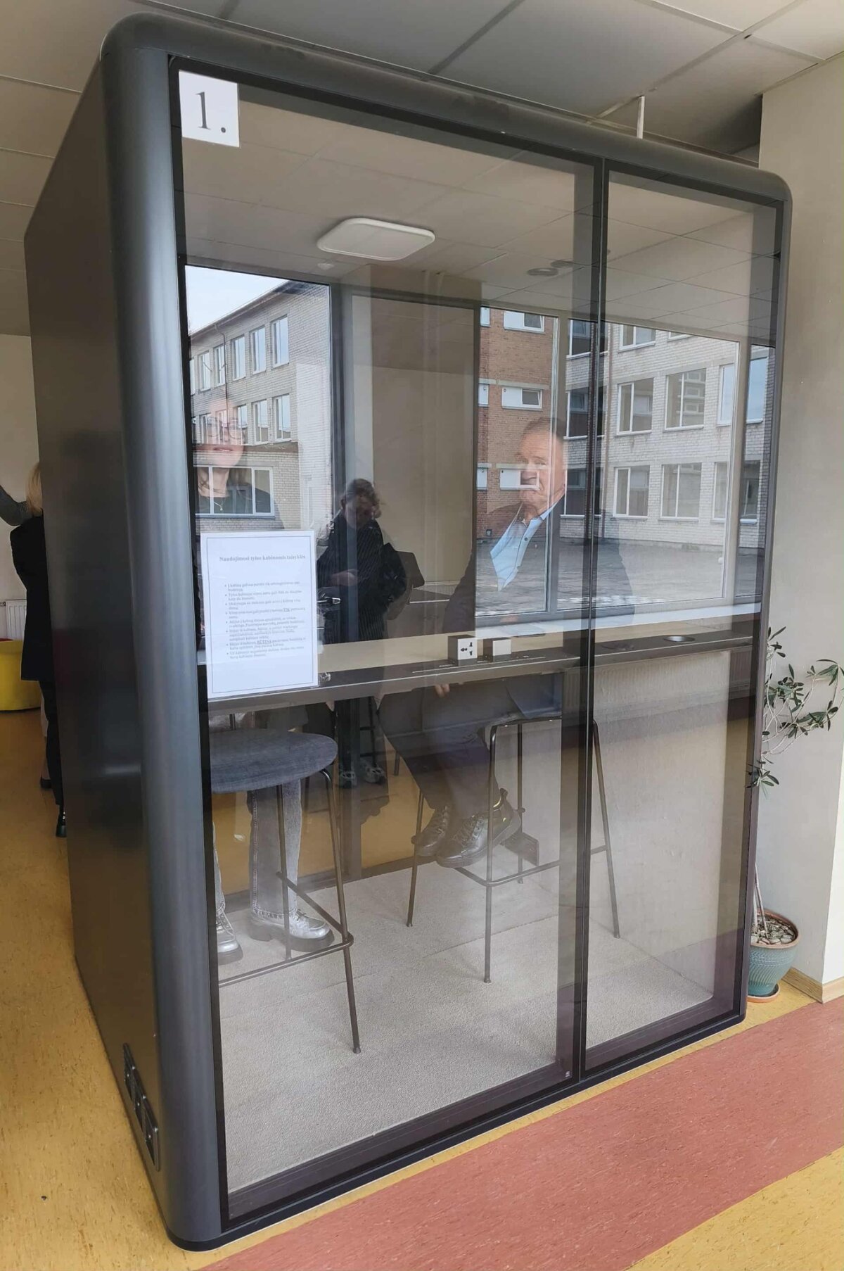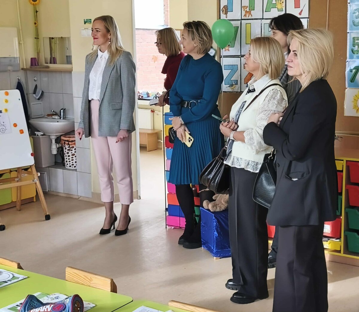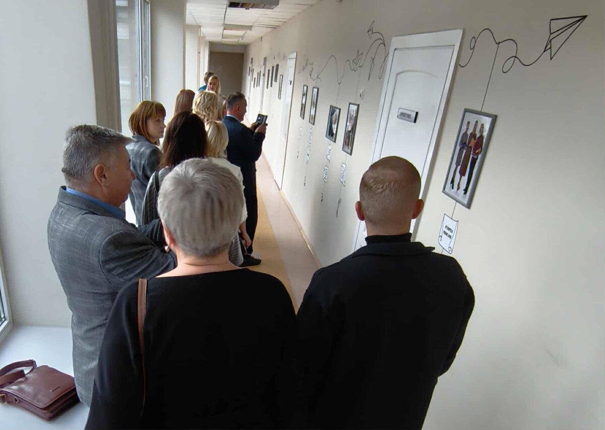 Mokyklos direktorė svečiams pristatė naujai įrengtas erdves, kurios skatina visapusišką mokinių tobulėjimą, kūrybiškumą ir bendradarbiavimą.