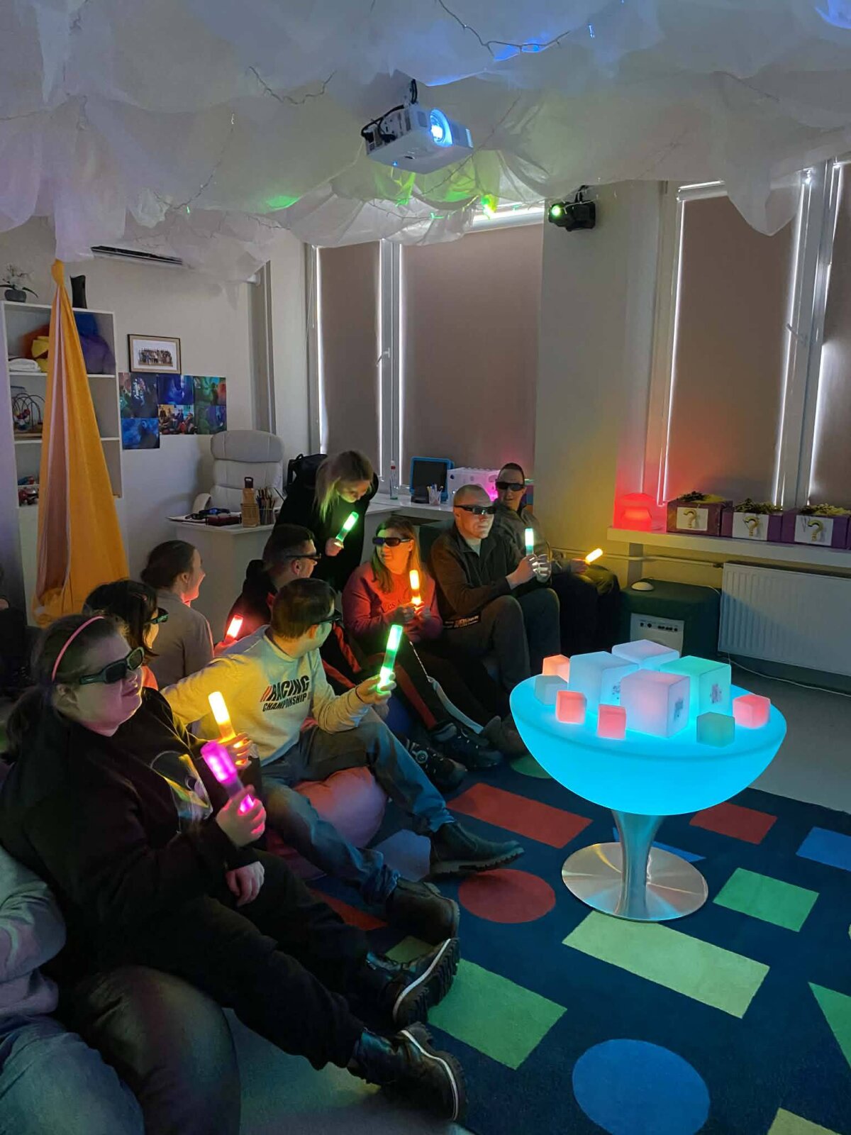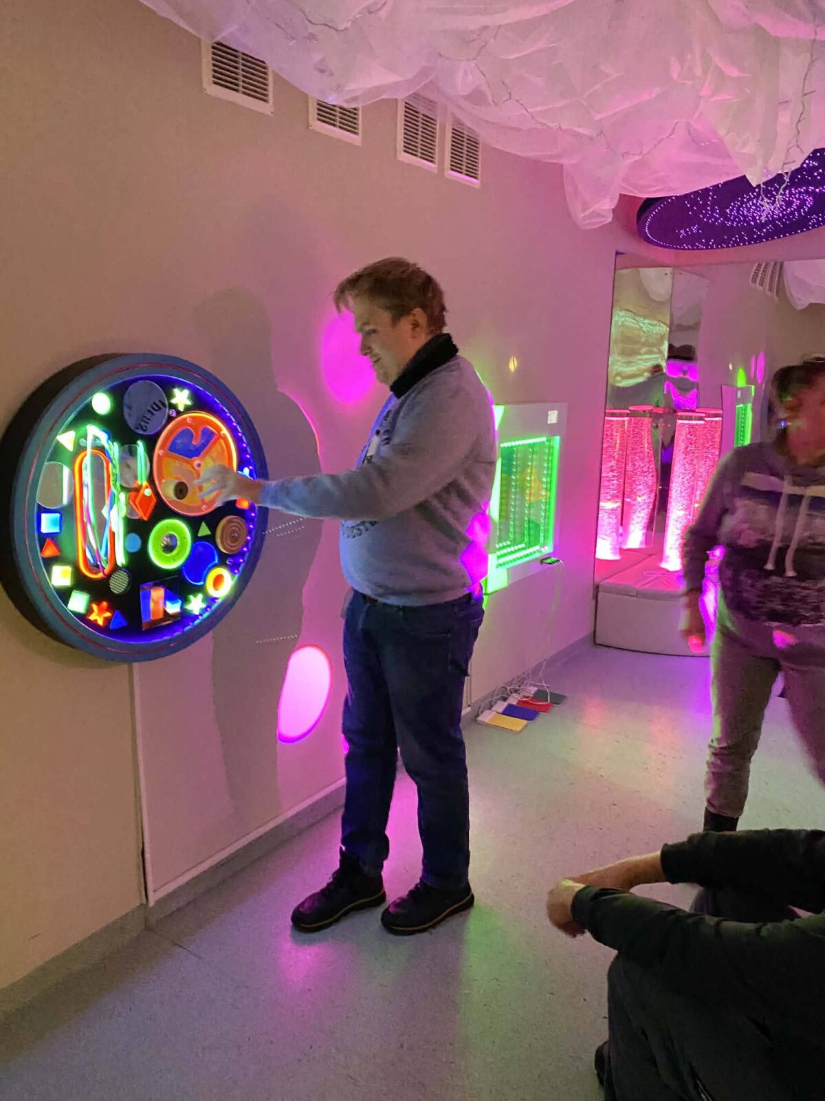 Čia jiems buvo papasakota apie kambario paskirtį, įvairias priemones ir veiklas, kurios padeda nurimti, susitelkti ir geriau pažinti savo emocijas. Svečiai ne tik stebėjo vykstančius užsiėmimus, bet ir patys juose dalyvavo — smalsiai tyrinėjo, klausė, lietė, bandė, o svarbiausia — patyrė, kaip sensorinės veiklos gali praturtinti emocinę savijautą ir padėti atrasti vidinę pusiausvyrą.