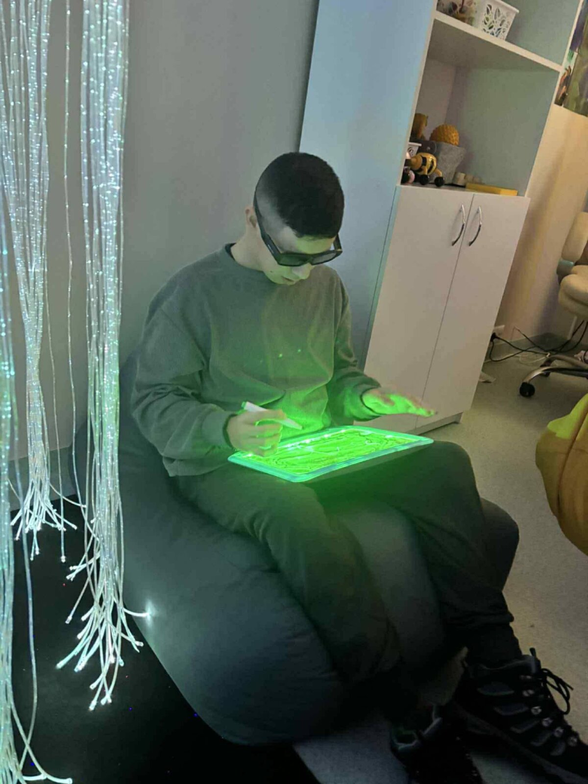 Sensoriniame kambaryje vyko fizinio ugdymo pamoka KITAIP. Pamokoje svečiavosi Vš... -