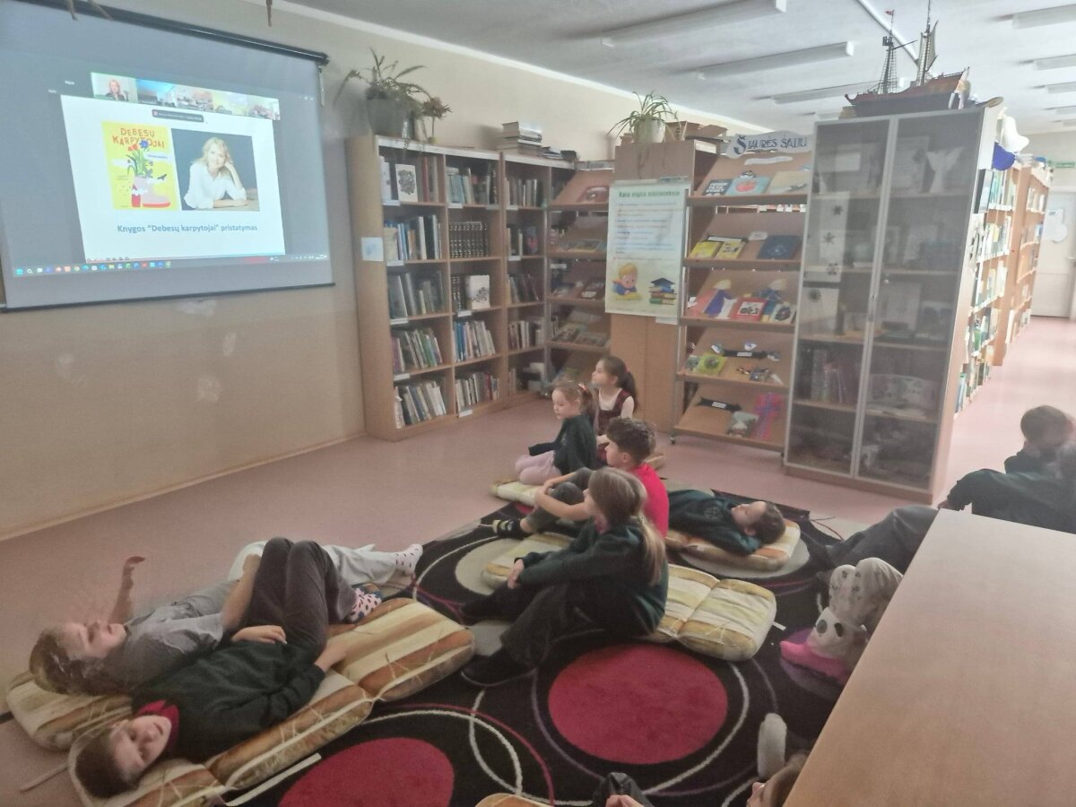 Visos dienos grupės mokiniai su mokinio padėjėja Justina Latve dalyvavo susitikime su rašytoja Evelina Daciūte. Ir ne bet kaip – o virtualiai! Buvo smagu ir neįprasta save matyti tarp kitų dalyvių ekrane. Rašytojos knygas skaito ir mėgsta ne tik Lietuvos vaikai. Jos knyga „Laimė yra lapė“ pelnė apdovanojimą net Amerikoje. Be to, išversta į lenkų ir makedoniečių kalbas. Šiuo metu rašytoja gyvena Kopenhagoje. Iš ten vakar ir pristatė naujausią eilėraščių knygą „Debesų karpytojai“. Klausėmės eilėraščių „Ausys“, „Norėčiau“. „Šunelis“ ir „Šuo ir pienių pūkai“ - eilėraščiai apie rašytojos šunį. Jis, pasirodęs ekrane, sužavėjo mūsų mokinius ir sulaukė komplimentų.