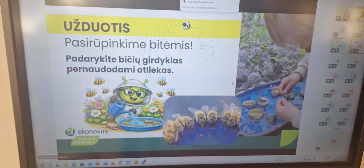 Vasario 10 d. 1a, 2b, 3a, 3b, 3c, 4c klasių mokiniai dalyvavo nuotolinėje „Tvarumo akademijos“ pamokoje „Bičių gyvenimas – tarp gėlių ir šiukšlių“ . Nuotolinės pamokos svečias – miesto bitininkas Paulius Chockevičius, kuris jau 10 metų draugauja su bitėmis ir apie jas žino beveik viską!
