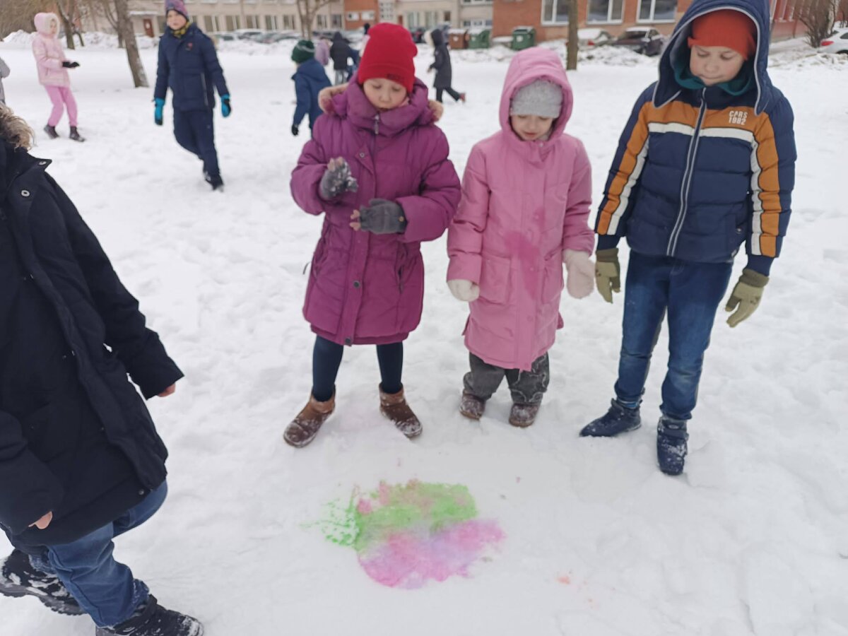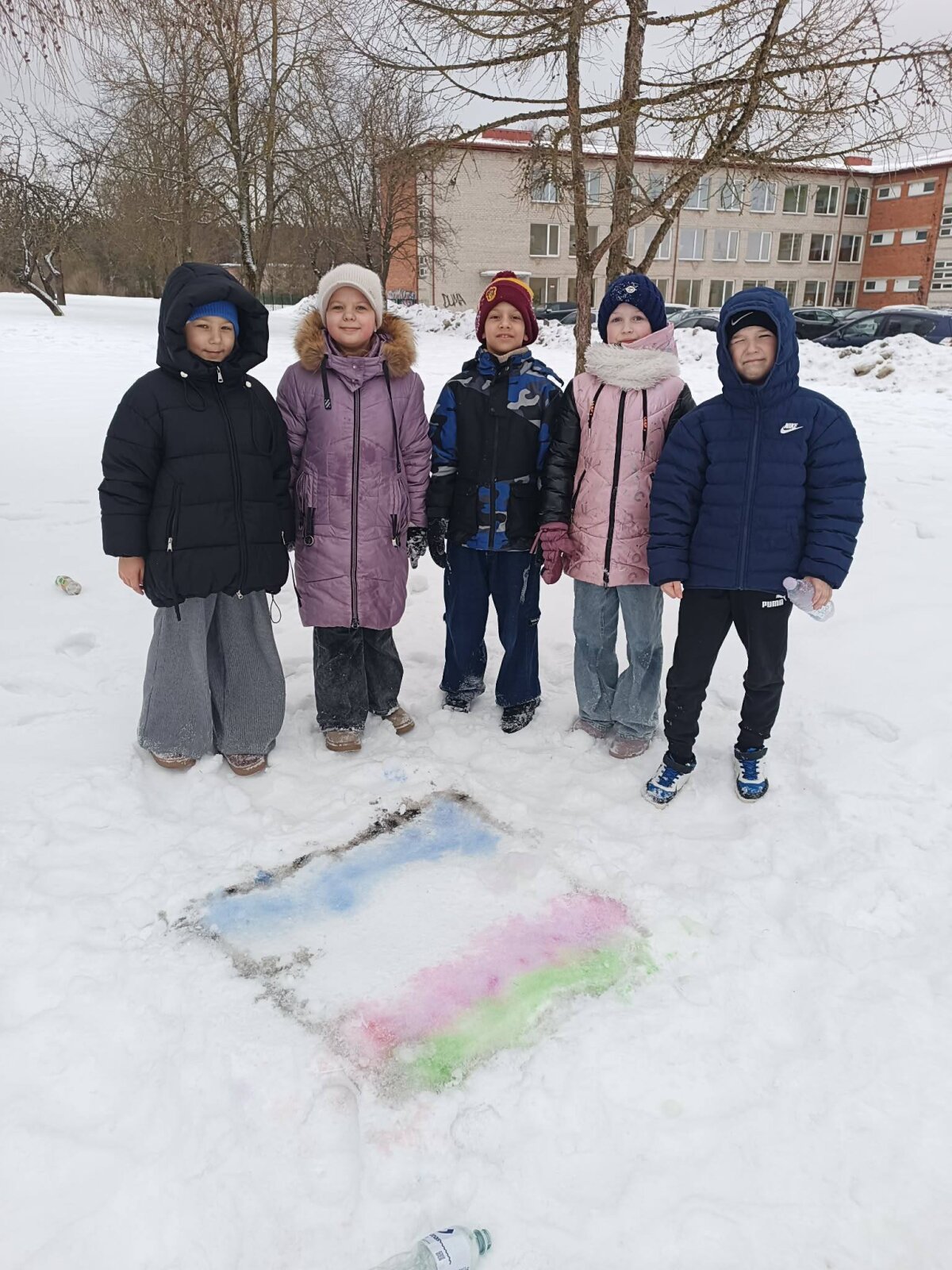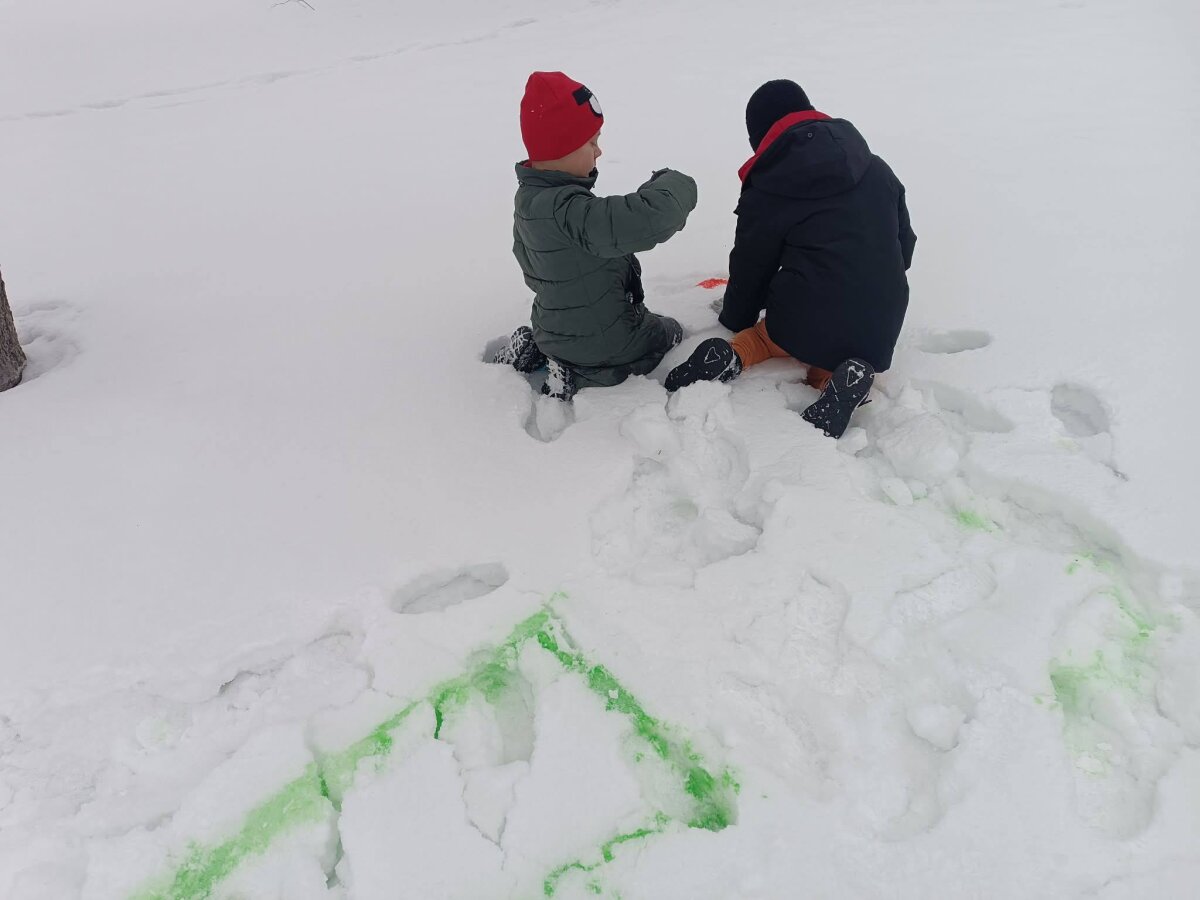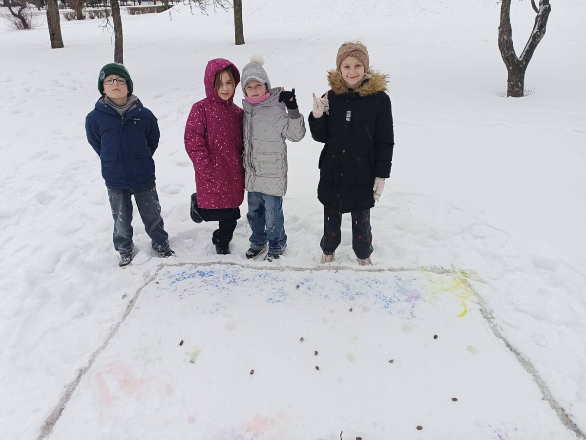 2a klasės mokinukai vietoj popieriaus pasirinko baltutėlio sniego lapą. -