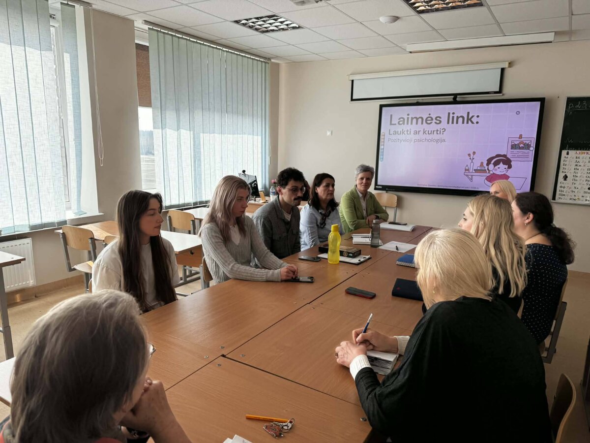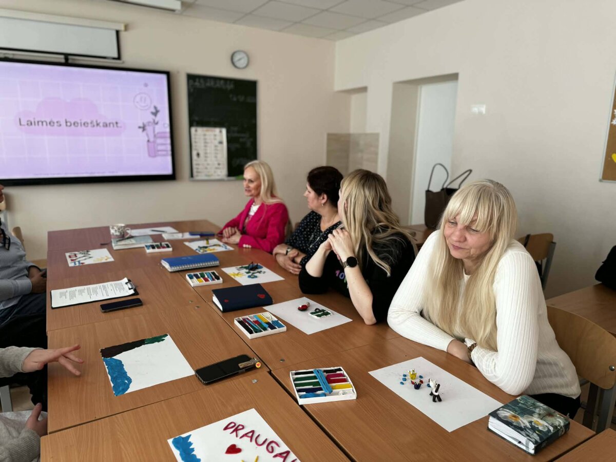 Antradienį, kovo 17 dieną, būrelis mokytojų dalyvavo psichologo mokymuose „Laimės link: laukti ar kurti?“. Padedami psichologo D. Staneikos, pedagogai pasinėrė į laimės paieškas. Mokymų metu mokytojai atliko veiklas su metaforinėmis kortomis, dalyvavo pašėlusiai linksmose kūrybinėse dirbtuvėse. Šių mokymų metu kiekvienas kūrė savo laimės paveikslą, dalijosi šio paveikslo detalėmis su kitais bei padėjo nors trumpam sau ir kolegoms pasijusti laimingiems.