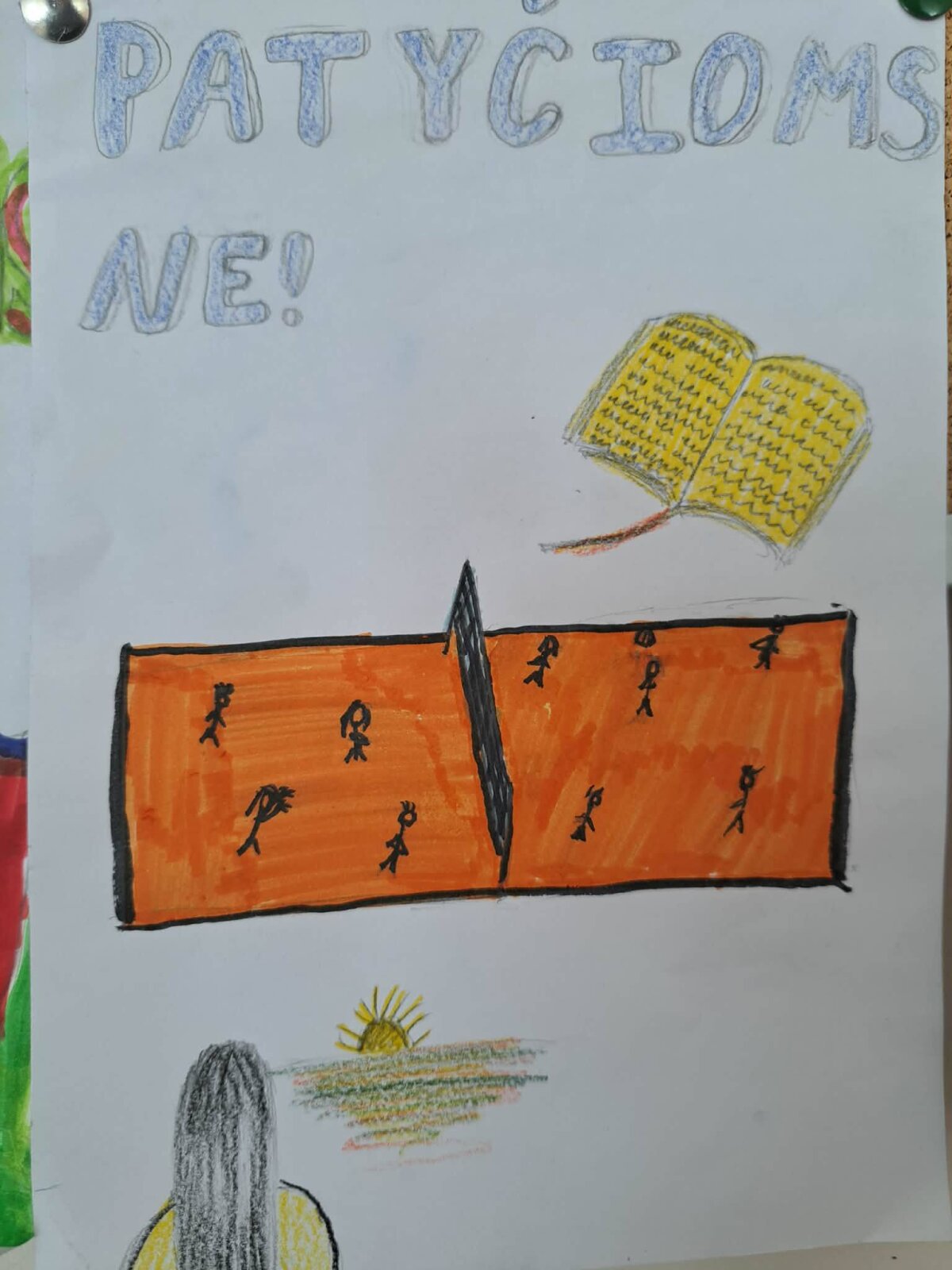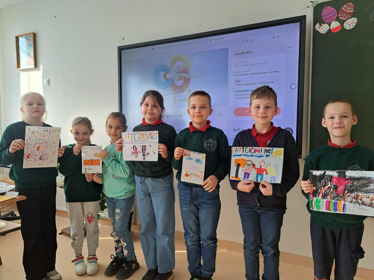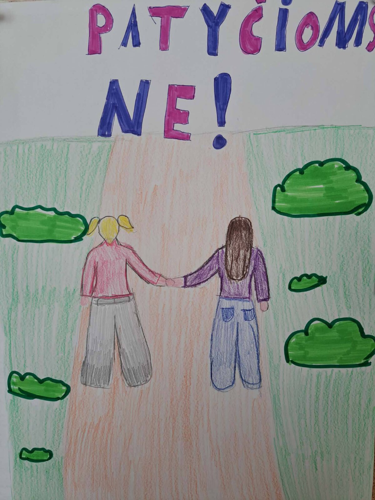 Dirbdami grupėse, prisiminė, kas yra patyčios, kokios jų formos, kaip jas stabdyti, į ką kreiptis pagalbos, aptarė pavyzdžius iš gyvenimo, vaidino situacijas.