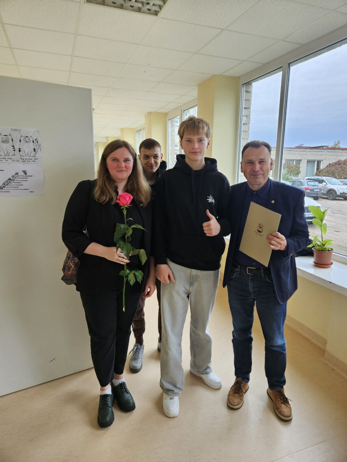 - Ukmergės rajono savivaldybės administracijos švietimo, kultūros ir sporto skyriaus vedėjo padėkos raštai įteikti istorijos mokytojai Redai Remeikienei ir technologijų mokytojui Artūrui Žilinskui.