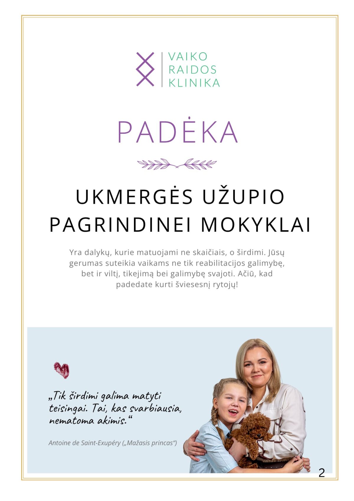 Nuoširdžiausia padėka ir žinutė mūsų mokyklai skrieja iš Vaiko raidos klinikos