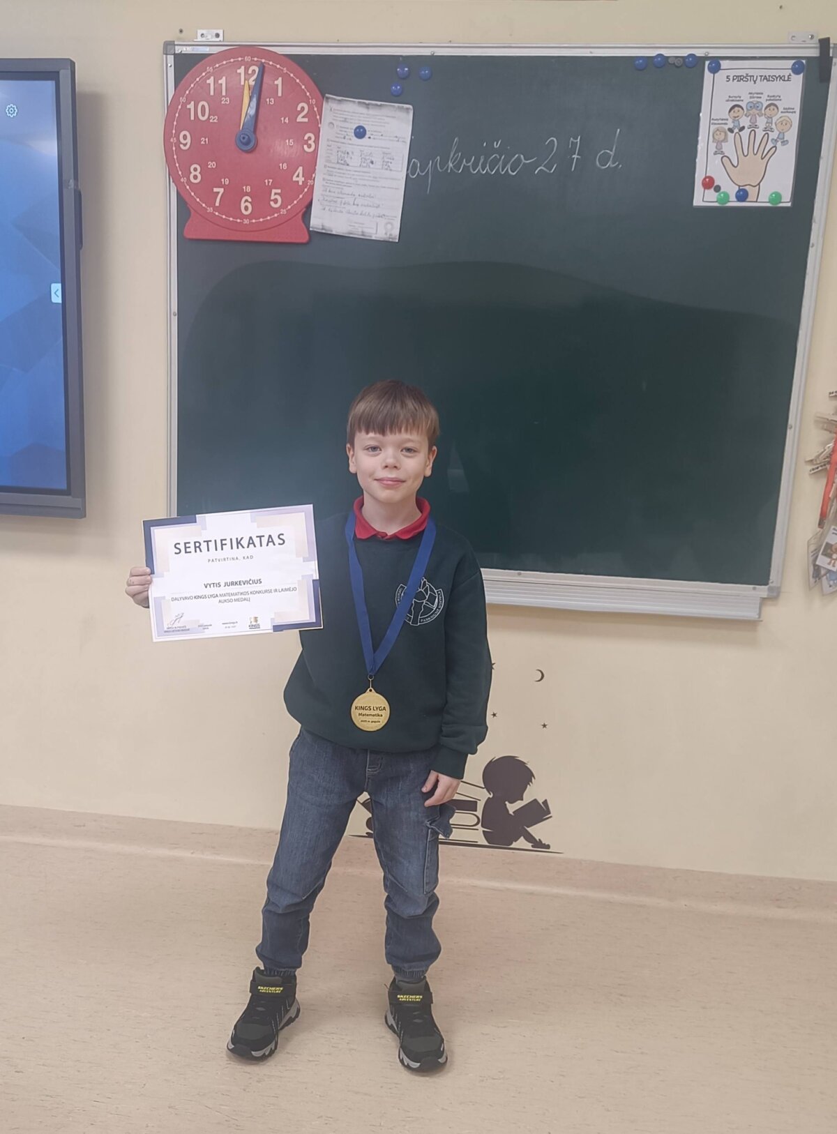2b klasės mokinys Vytis Jurkevičius KINGS LYGA matematikos konkurse laimėjo aukso medalį.