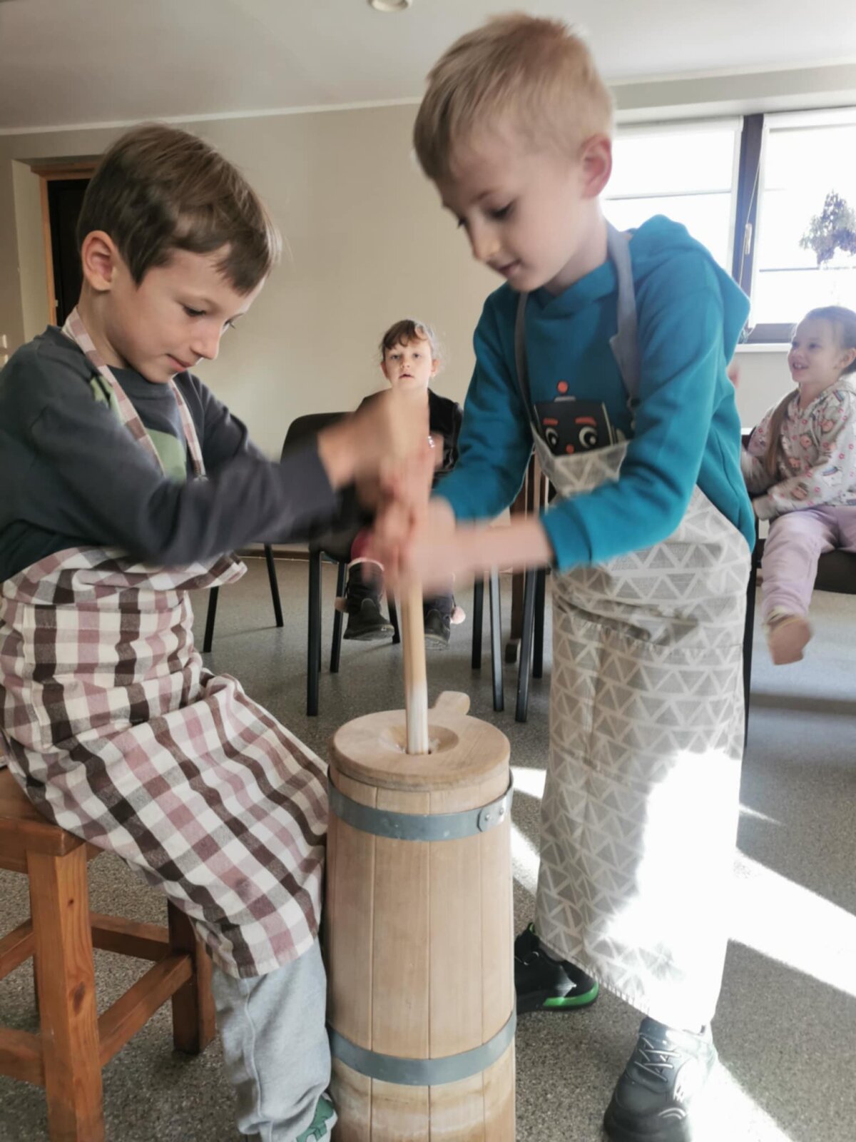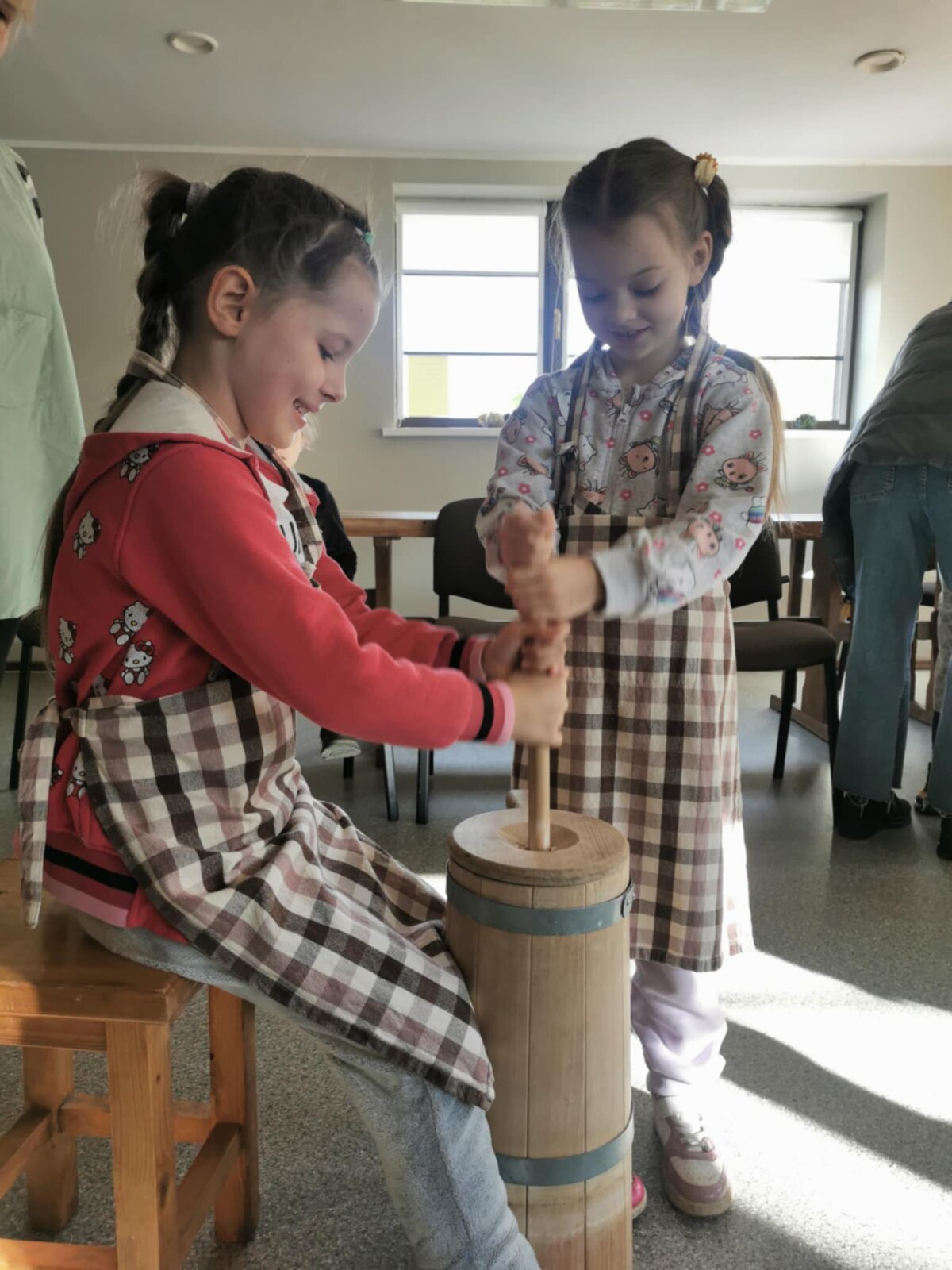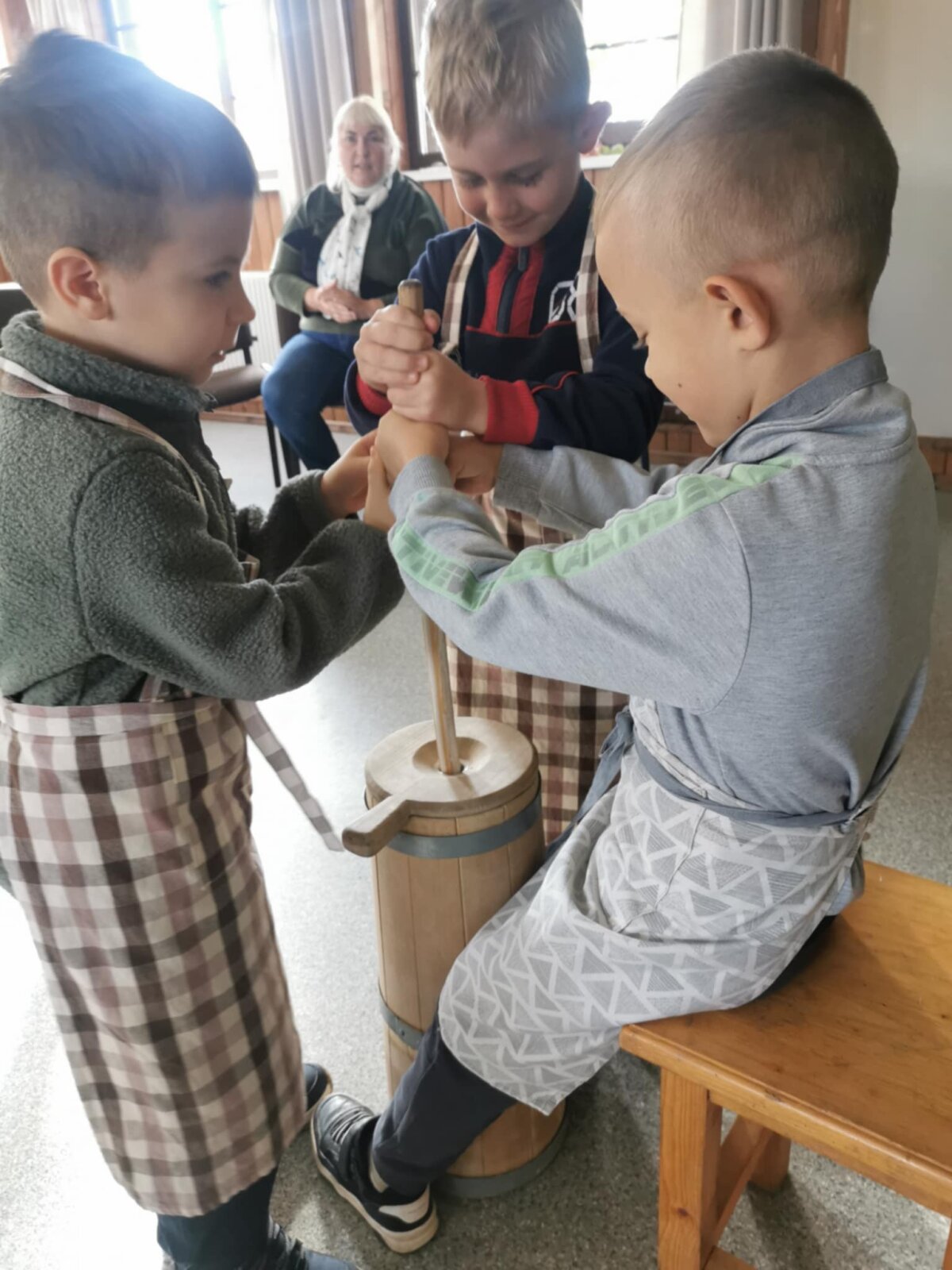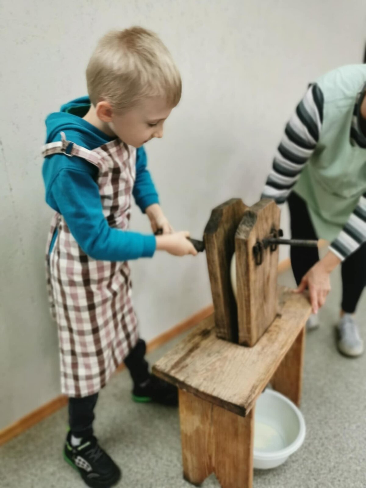 Priešmokyklinukai šią savaitę mokosi apie ūkį. Todėl lankėsi ūkiuose. „Giliukai“ aplankė Petronių kaime gyvenančią Jonuko močiutę Audronę. Ji priešmokyklinukams papasakojo kokie produktai gaminami iš pieno, parodė, kaip spaudžiamas sūris. Vaikučiai mušė sviestą, ragavo įvairių rūšių sūrius, valgė duonelę su pačių sumuštu sviesteliu.