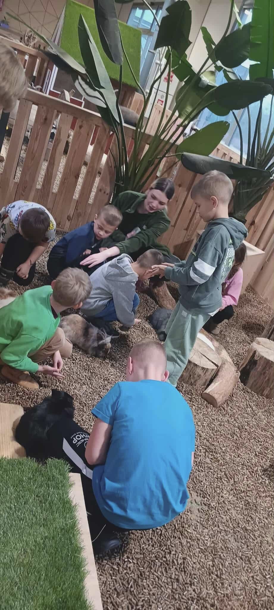 Vėliau lankėsi kontaktiniame Zoologijos sode po stogu, kur galėjo iš arčiau susipažinti su gyvūnais turėdami tiesioginį kontaktą – juos glostydami, maitindami, bendraudami ir stebėdami. Terapinė edukacija suteikė pirmokėliams žinių apie gyvūnų pasaulį, ugdė vaikų pažinimą, kantrybę, švelnumą, rūpestingumą, atsakingumą.