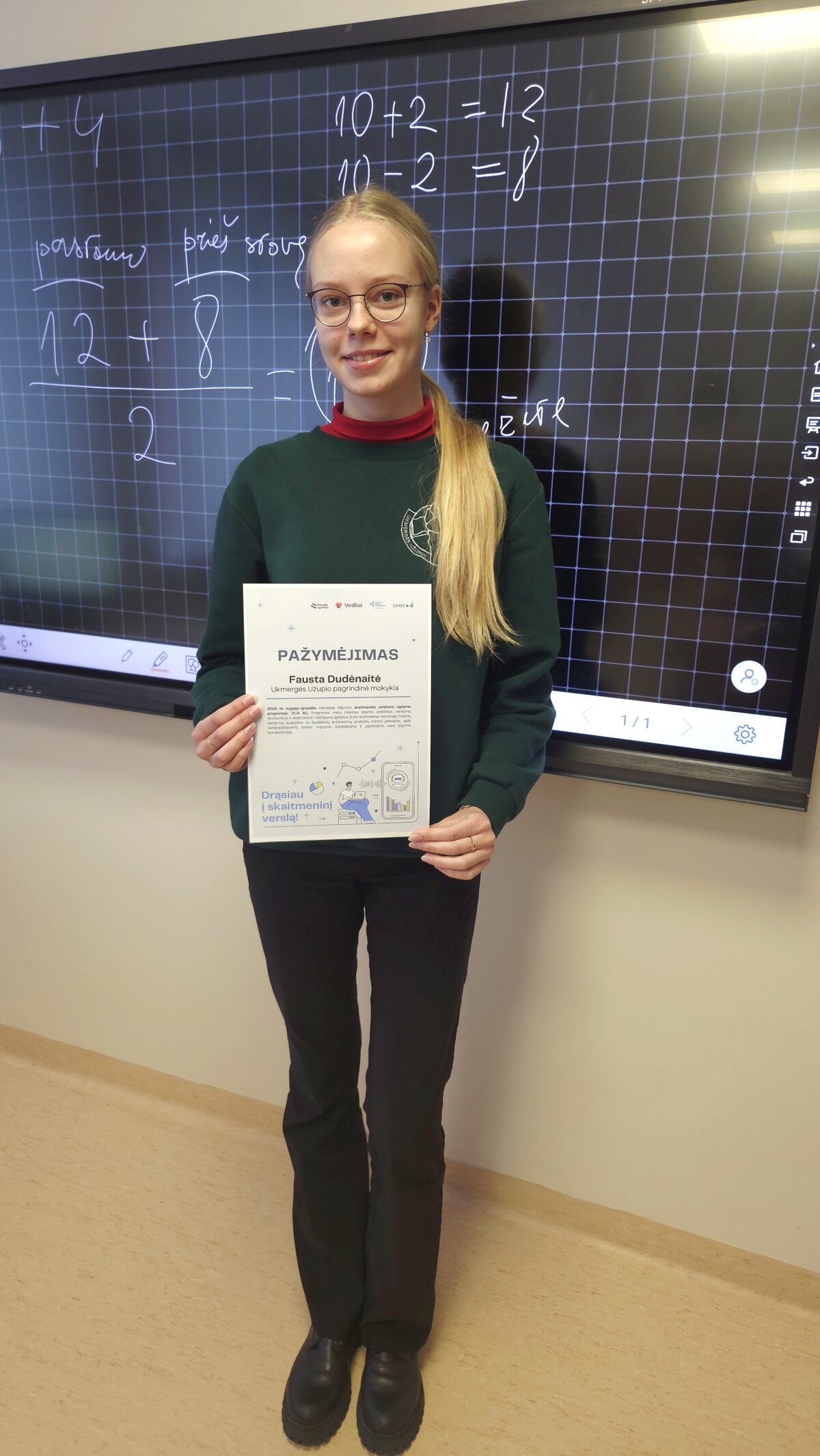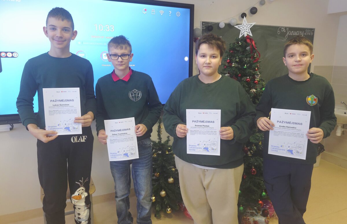 Mokytojos Virgilija Markevičienė ir Vaida Žaibė su 5-8 kl. mokiniais 2025 m. rugsėjo–gruodžio mėnesiais dalyvavo skaitmeninio verslumo ugdymo programoje. Programos metu mokiniai stiprino praktinius verslumo, ekonomikos ir skaitmeninio raštingumo įgūdžius. Ir net įkūrė skaitmeninę mokomąją mokinių bendrovę