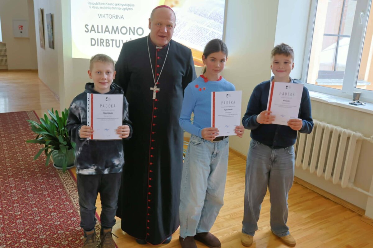 Šią savaitę Kauno švietimo inovacijų centre vyko respublikinė Kauno arkivyskupijos 5 klasių mokinių dorinio ugdymo (katalikų tikybos) viktorina „Saliamono dirbtuvės“. Joje dalyvavo 24 penktokai iš Kauno, Jonavos, Ukmergės, Kėdainių, Jurbarko ir kitų miestų.