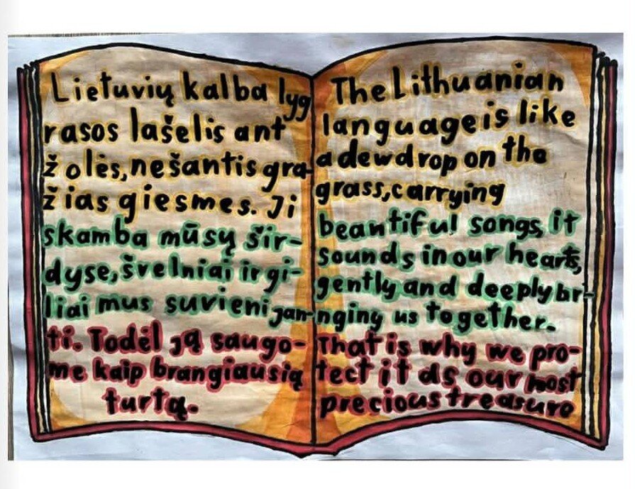 5-6 klasių mokiniai buvo kviečiami sukurti iliustraciją ir parašyti sentenciją lietuvių ir anglų kalbomis – taip atskleisti, kaip jaunas žmogus supranta Tėvynę: per kalbą, jausmą, kasdienius mažus, bet prasmingus dalykus.