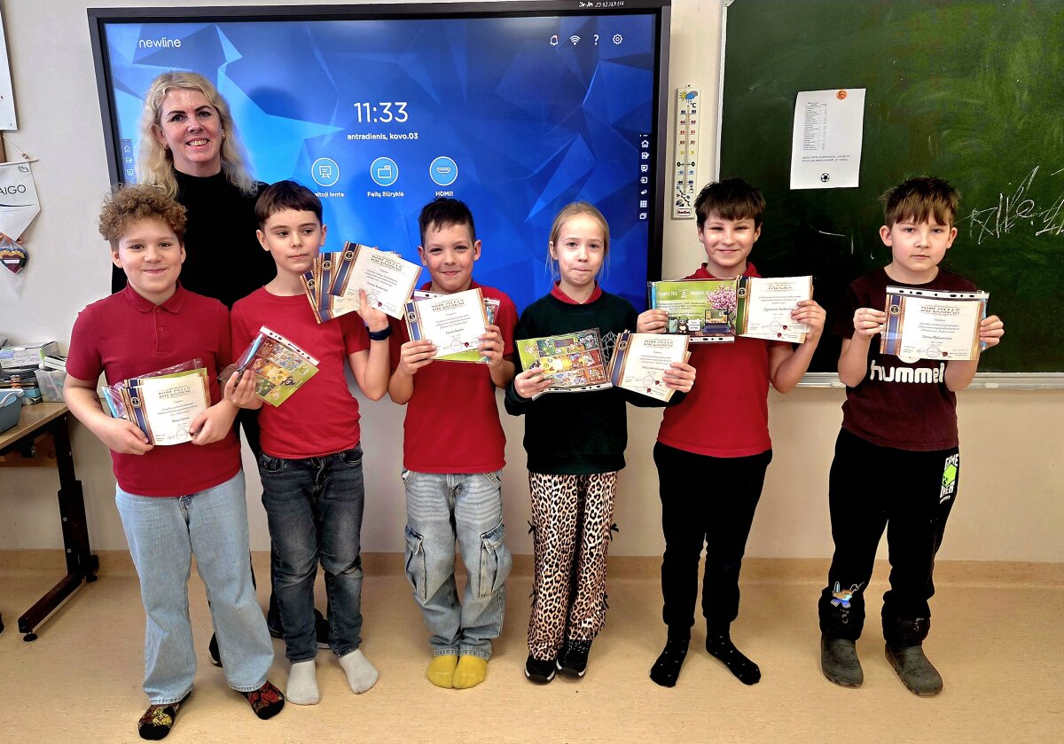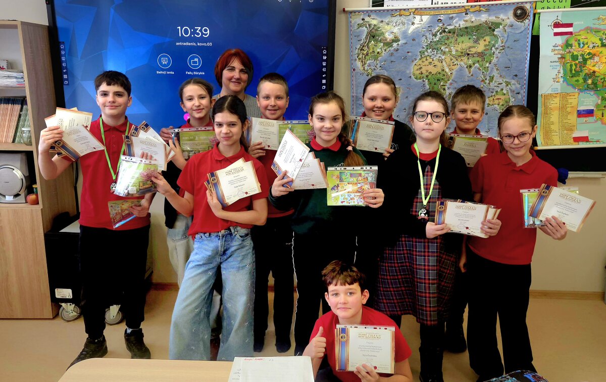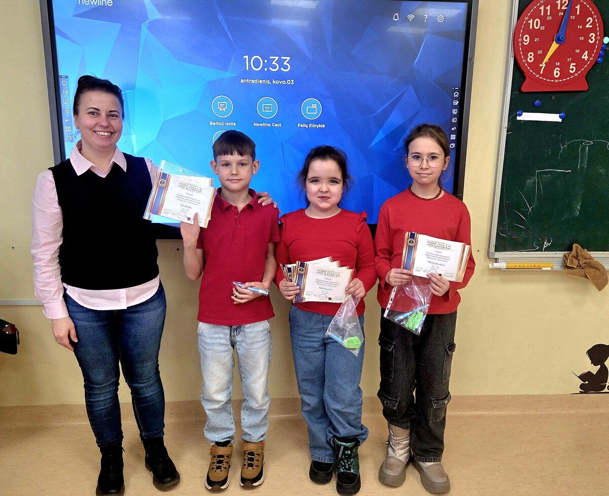 Džiaugiamės 6a klasės mokinės Evijos Rastauskaitės ir 5b klasės mokinio Kajaus P...