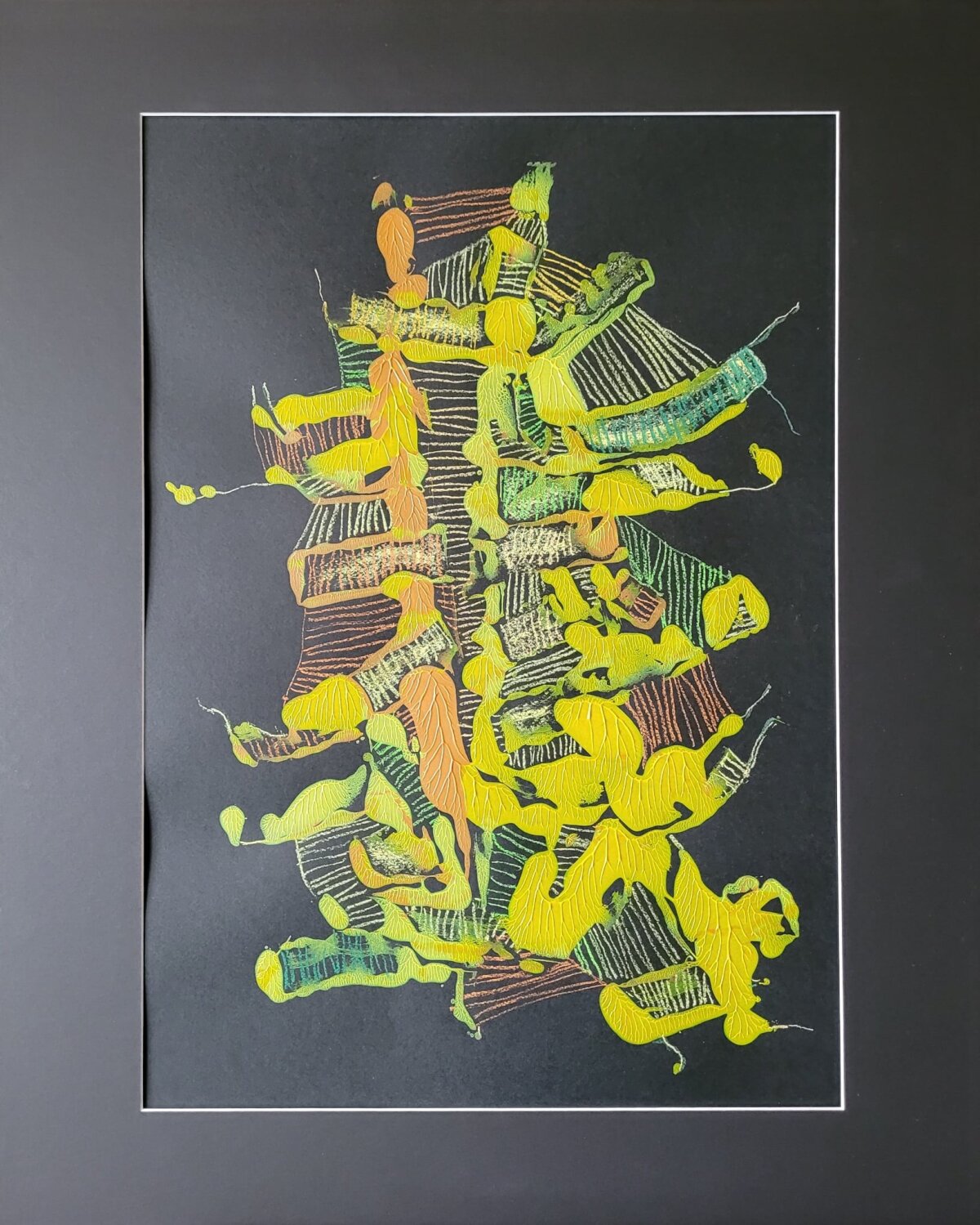 Stebėdama savo kūrinius, jaučiu, kad kaskart keičiasi emocijos, o tai skatina neprisirišti prie konkretaus pavadinimo, todėl ir atsisakiau pavadinimų. Žiūrovui siūlau pajusti, įžvelgti ir susigalvoti savo pavadinimus, ką ir suteikia abstraktus vaizdavimo būdas.
