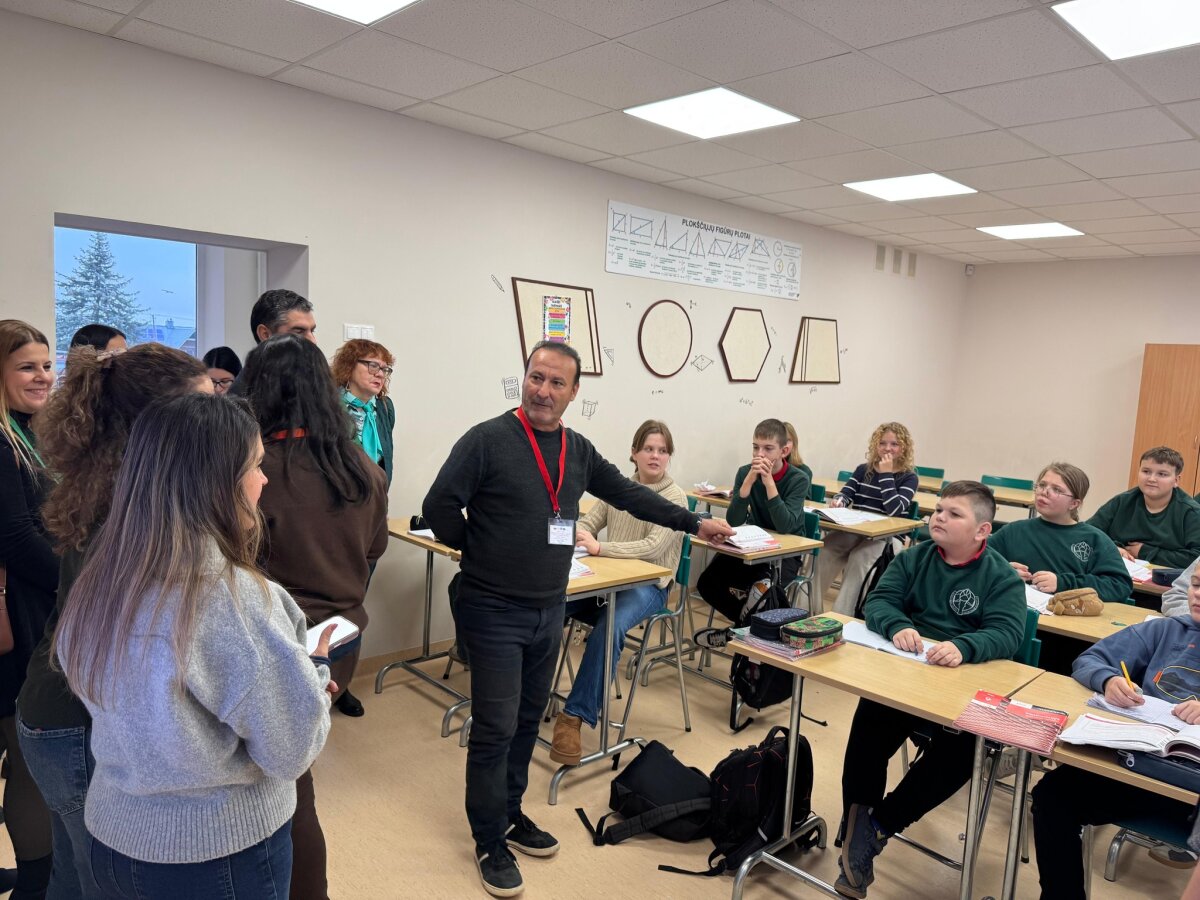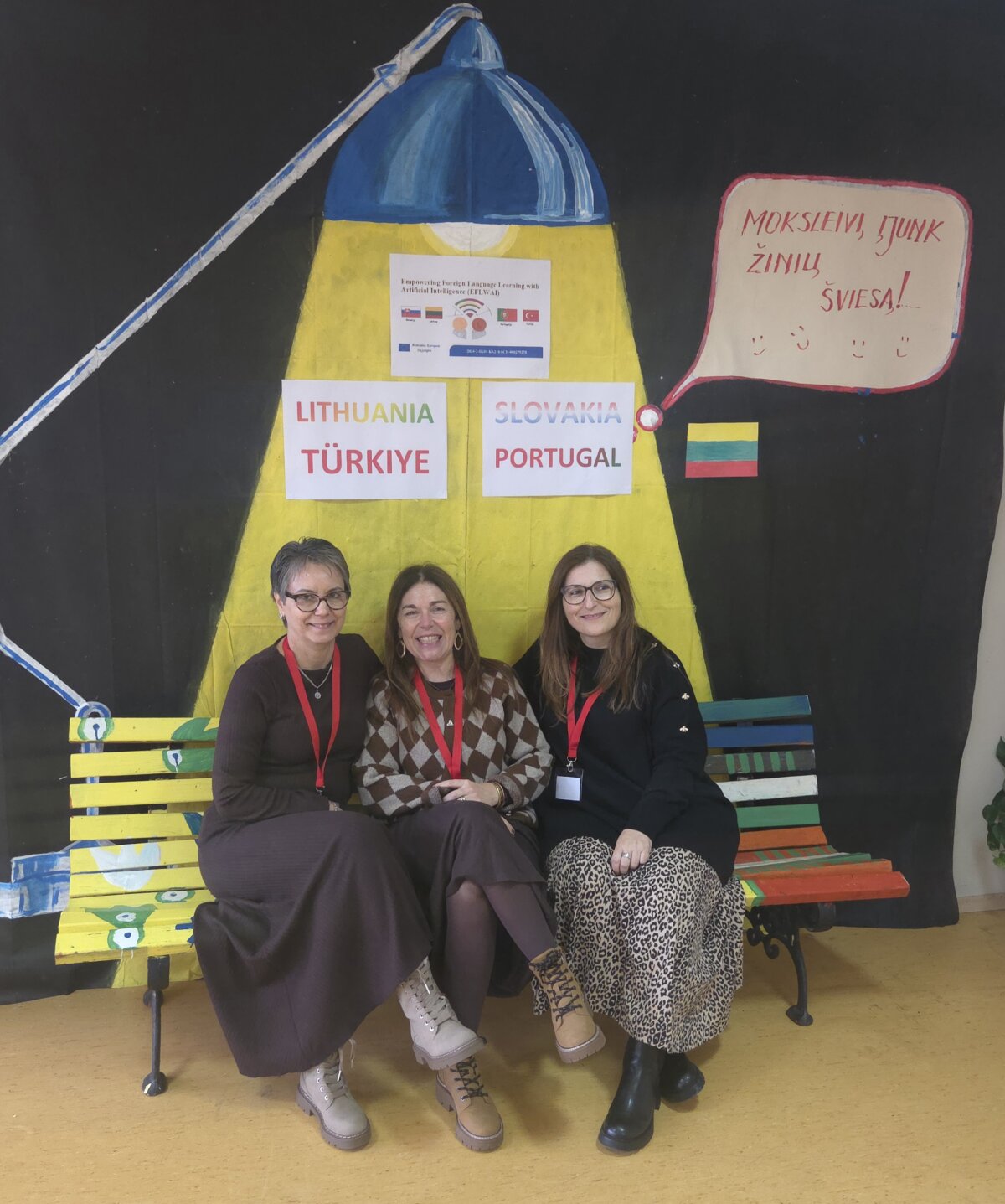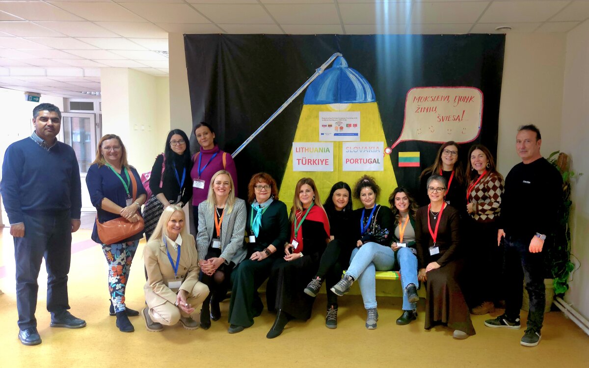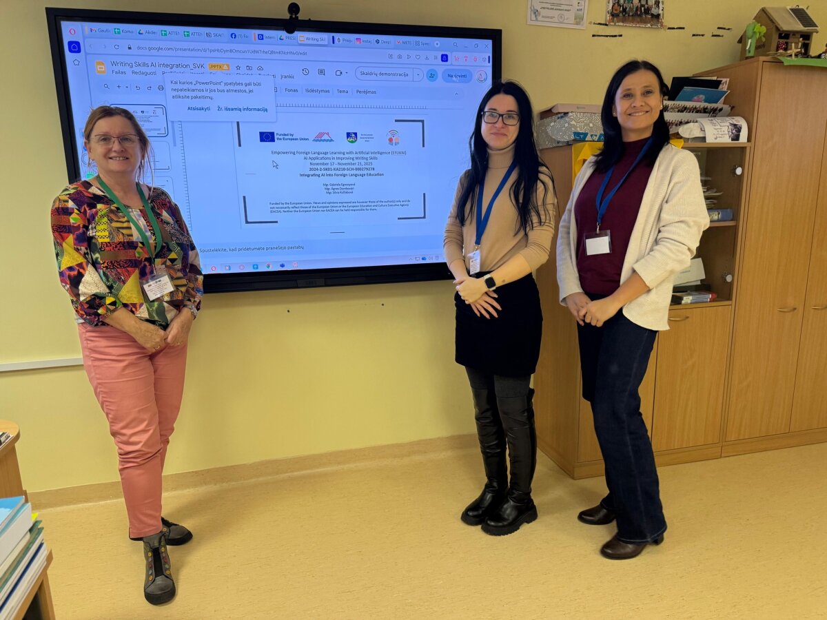 Lapkričio 17–21 dienomis mūsų mokykla tapo tikru tarptautiniu centru – čia vyko Erasmus+ projekto „Empowering Foreign Language Learning with Artificial Intelligence“ („Dirbtinio intelekto panaudojimas užsienio kalbų mokymuisi“) mobilumas. Svečius iš Turkijos, Portugalijos ir Slovakijos pasitiko mūsų mokyklos komanda: direktorė Miglė Kavaliauskė, projektų koordinatorė Virgilija Markevičienė ir anglų kalbos mokytoja Rusnė Valeikienė.