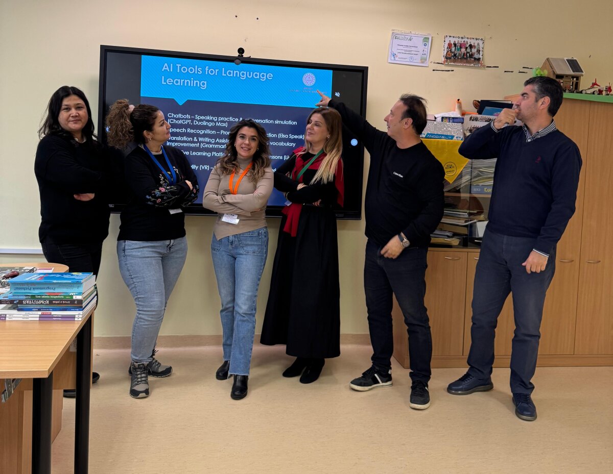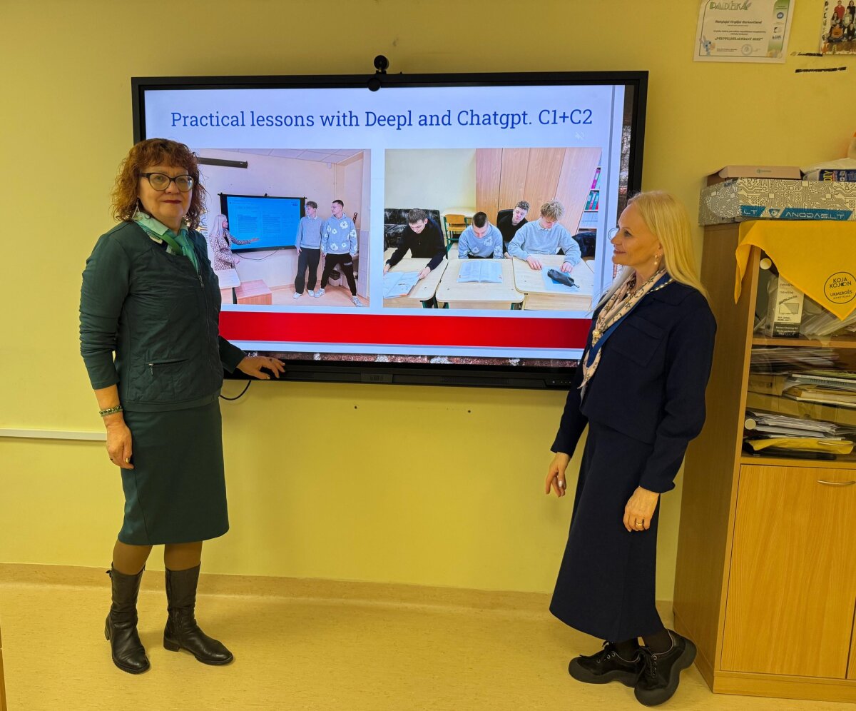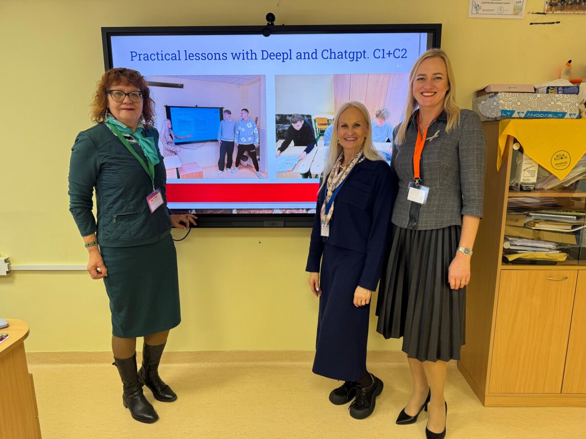 Lapkričio 17–21 dienomis mūsų mokykla tapo tikru tarptautiniu centru – čia vyko Erasmus+ projekto „Empowering Foreign Language Learning with Artificial Intelligence“ („Dirbtinio intelekto panaudojimas užsienio kalbų mokymuisi“) mobilumas. Svečius iš Turkijos, Portugalijos ir Slovakijos pasitiko mūsų mokyklos komanda: direktorė Miglė Kavaliauskė, projektų koordinatorė Virgilija Markevičienė ir anglų kalbos mokytoja Rusnė Valeikienė.