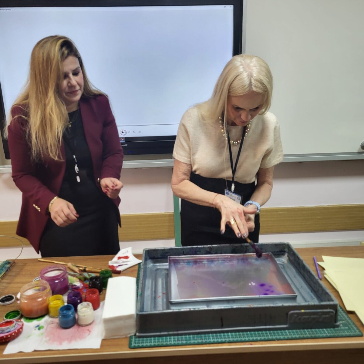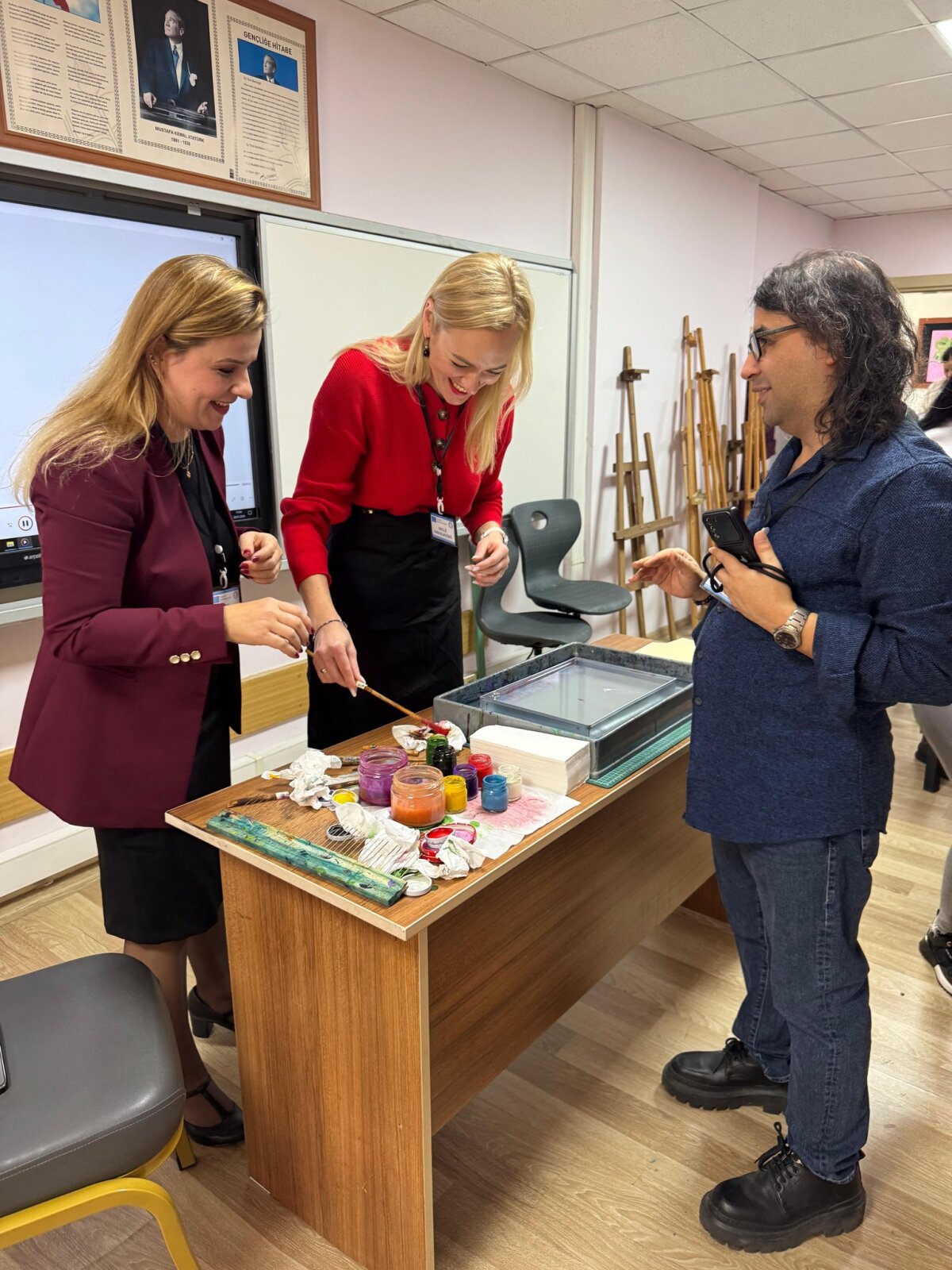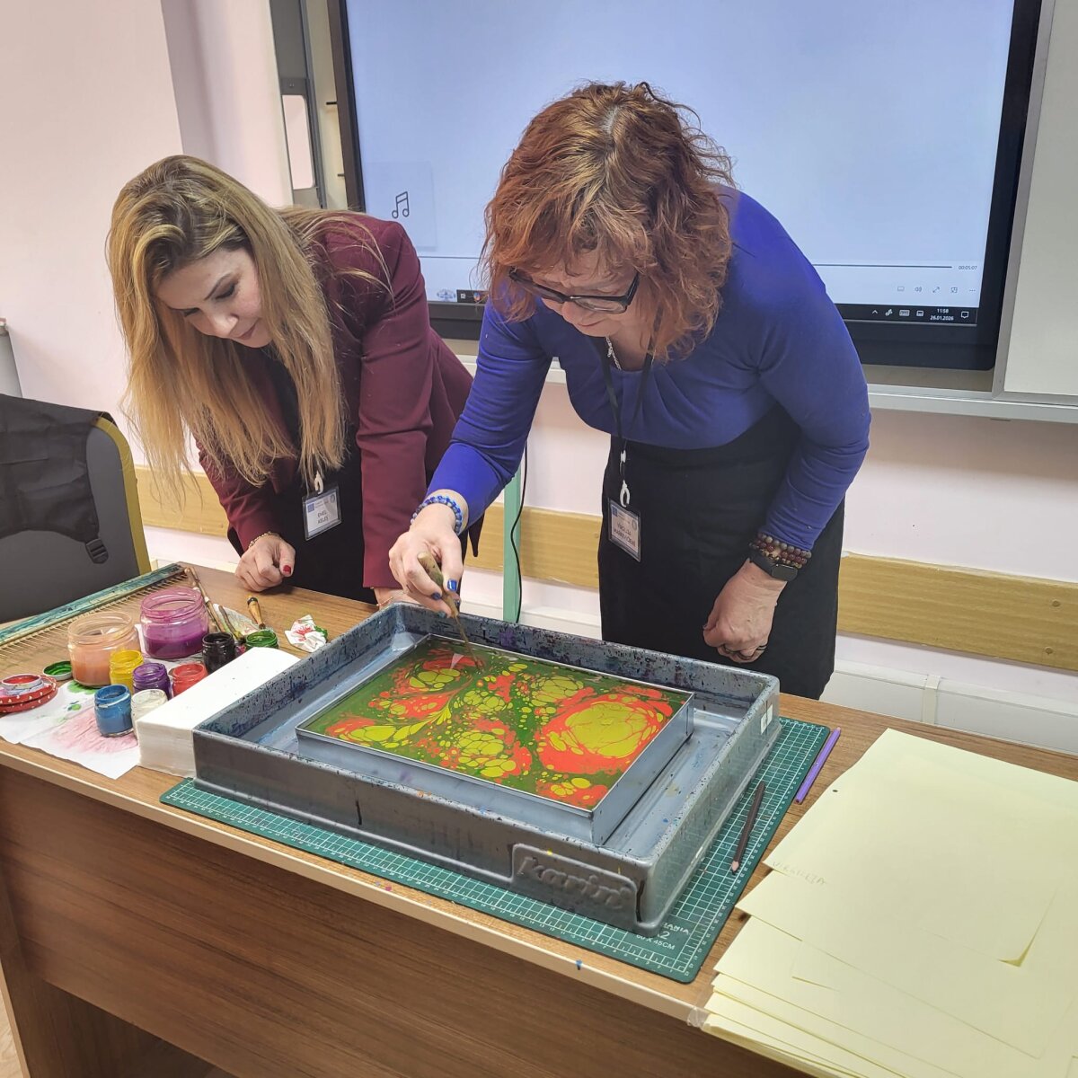 Edukacinę programą papildė pažintis su tradicine turkiška tapybos technika ebru (marmuravimu). Ši veikla suteikė dalyviams galimybę kurti unikalius meno kūrinius, skatino kūrybiškumą, susikaupimą ir kantrybę.