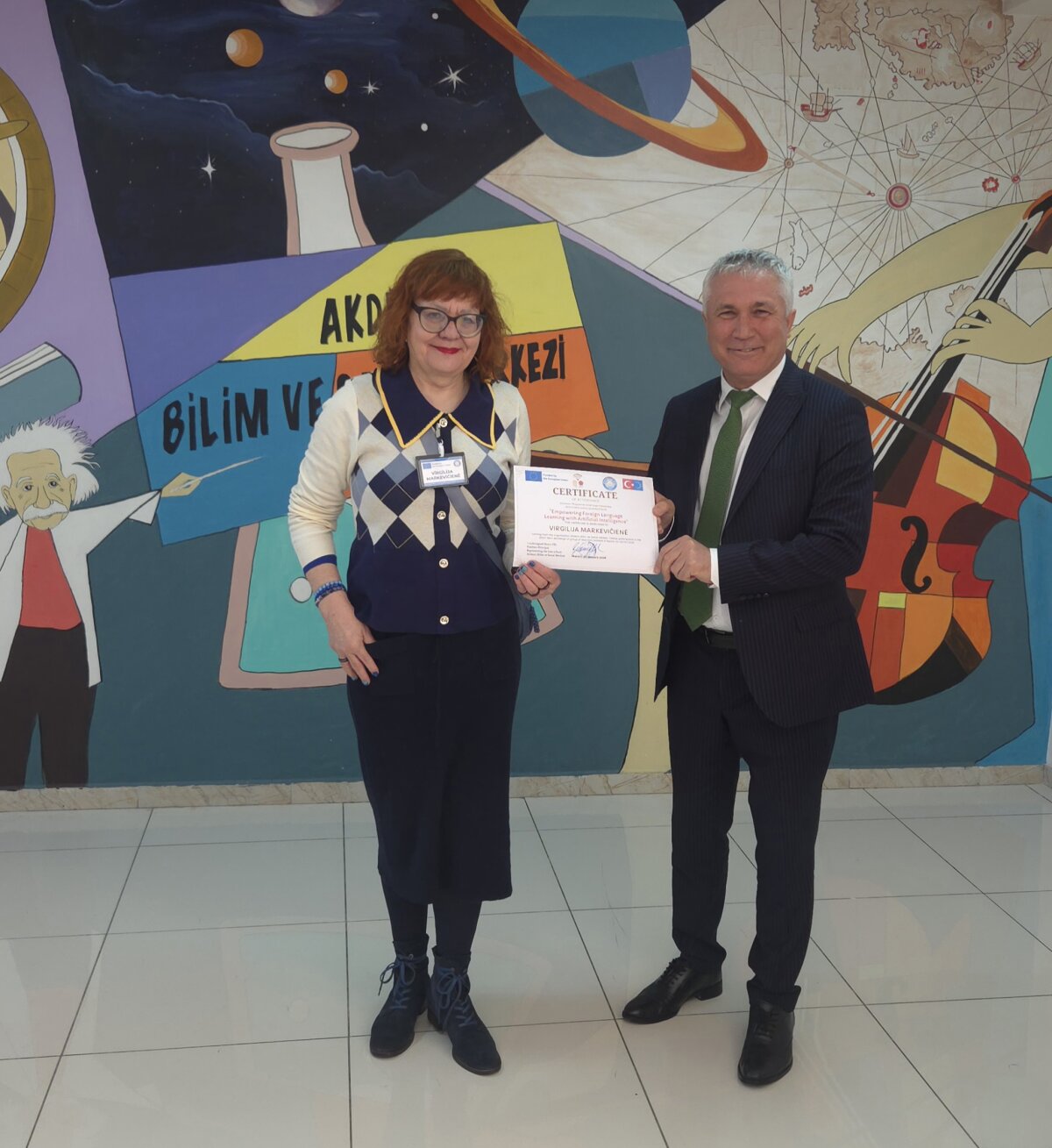 2026 m. sausio 26–30 dienomis mūsų mokyklos komanda – mokyklos direktorė Miglė Kavaliauskė, projektų koordinatorė Virgilija Markevičienė ir anglų kalbos mokytoja Rusnė Valeikienė – dalyvavo Erasmus+ projekto „Empowering Foreign Language Learning with AI“ tarptautiniame mobilumo susitikime Turkijoje, Mersino mieste, Akdeniz Bilim ve Sanat Merkezi mokykloje.