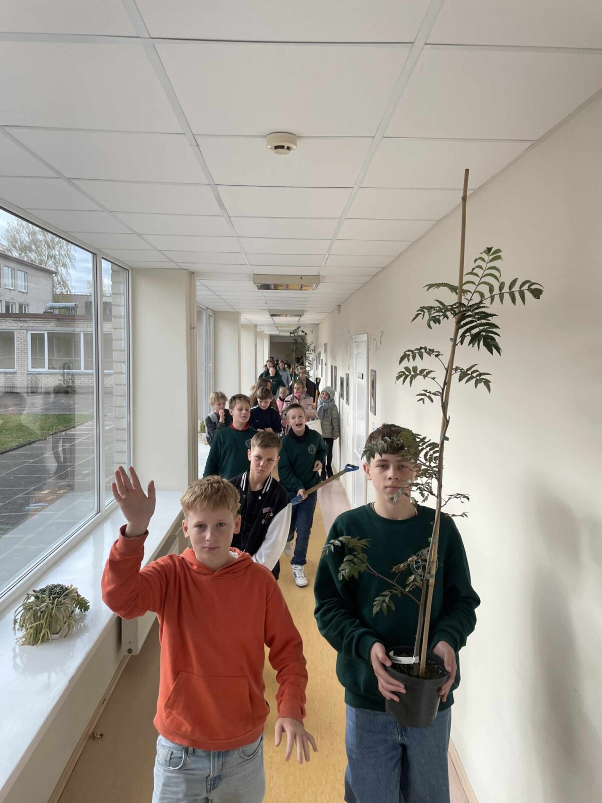 Spalio 22 d. mūsų mokykloje vyko graži ir prasminga akcija – medelių sodinimas. Į ,,Puošmedžio“ medelyną važiavo būrelis mokinukų ir pirko sodinukus. Jų prikrovė pilną geltonąjį autobusiuką. Mokiniai, padedami mokytojų, mokyklos darbininkų, entuziastingo pavaduotojo ūkio reikalams Rimvydo Žiupkos, sodino berželius, klevukus ir šermukšniukus, o direktorė su pagalbininkais – Boso dieną gautą ąžuoliuką. Taip visa bendruomenė prisidėjo prie žalesnės ir jaukesnės mokyklos aplinkos kūrimo.
