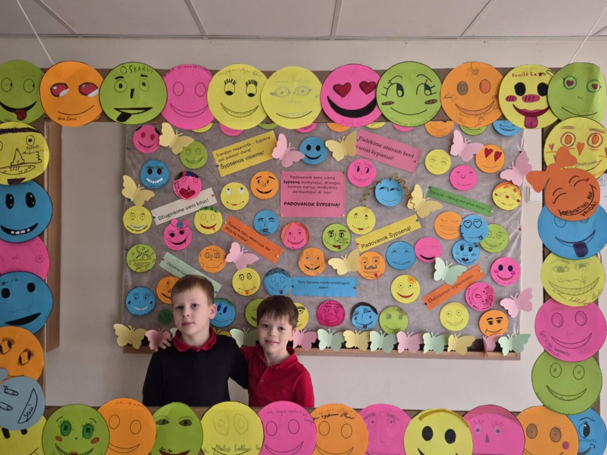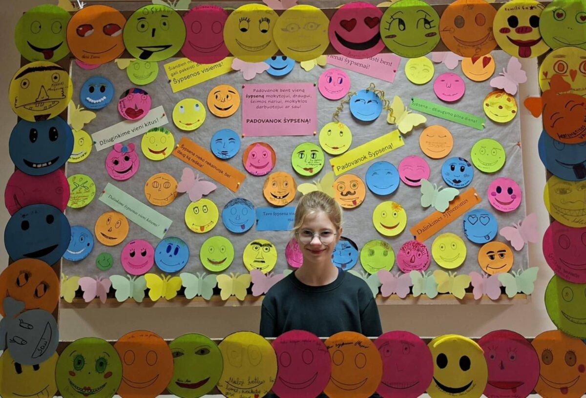 Mūsų mokykloje šią dieną minėjome dalindamiesi linkėjimais, gražiomis mintimis bei džiugiomis akimirkomis. Mokiniai kūrė šypsenų simbolius, skyrė juos mokytojams, šeimos nariams, draugams. Šypsenų dieną jau ne pirmus metus organizuoja mokytoja Jūratė Dunčienė. Dėkojame ir mokytojai Redai prisidėjusiai prie jaukesnės mūsų mokyklos atmosferos kūrimo. Šypsenų diena kviečia ne tik šypsoti, bet ir pastebėti aplinkinius būti atidesniems, jautresniems ir geresniems. O svarbiausia neužmirškime, kad kiekviena diena gali būti Šypsenų diena.