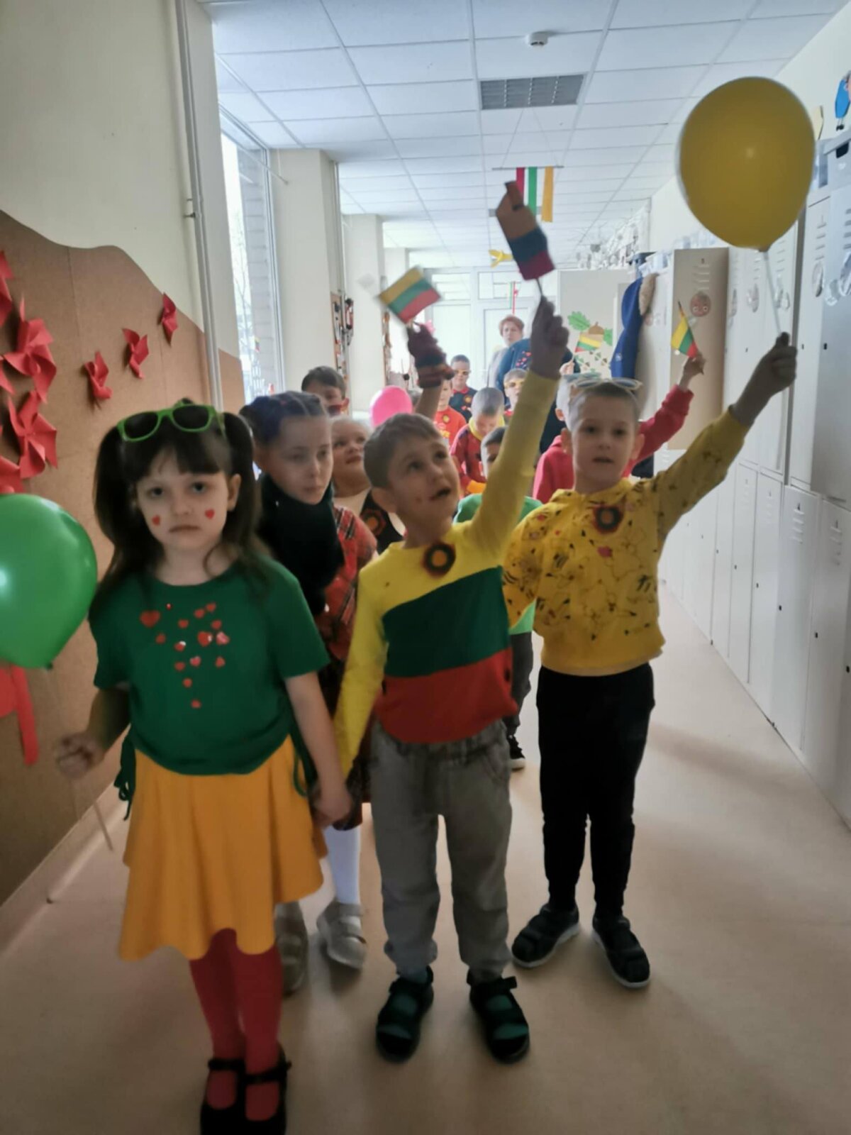 Šventės metu iškilmingai sugiedojome Lietuvos Respublikos himną, pajutome bendrystės ir pasididžiavimo savo valstybe jausmą. Renginį vainikavo mokinio padėjėjos Vitos iniciatyva – į dangų pakilę trispalviai balionai nuspalvino mokyklos vidinį kiemelį, primindami, kad laisvė gyva mūsų širdyse ir darbuose.