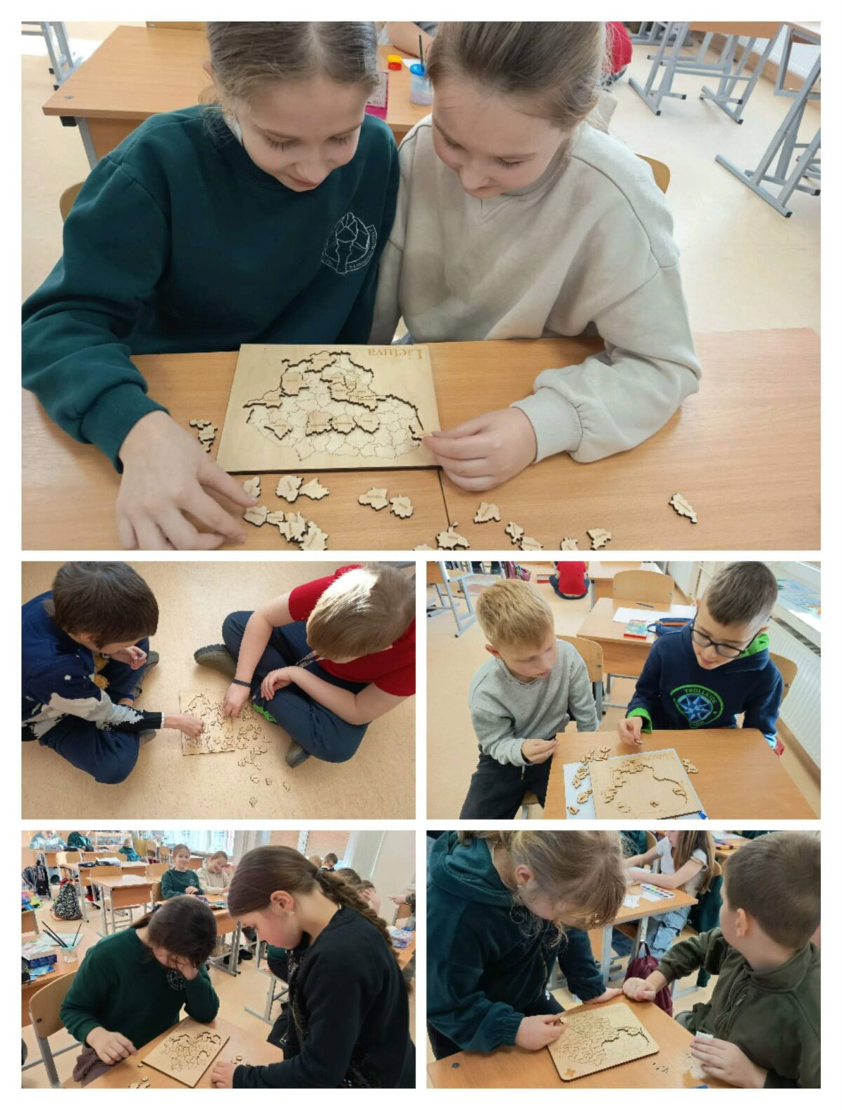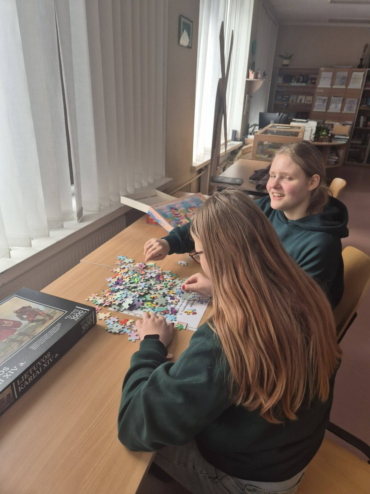 V16 dėlionių čempionato metu mokiniai dėliojo dėliones, susijusias su Lietuva – jos atspindėjo mūsų šalies simbolius, istoriją, gamtą bei svarbiausias vertybes. Tai buvo ne tik smagi veikla, bet ir puiki proga stiprinti komandinį darbą, kantrybę, susikaupimą bei domėjimąsi savo kraštu.