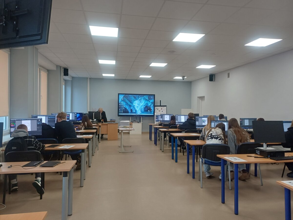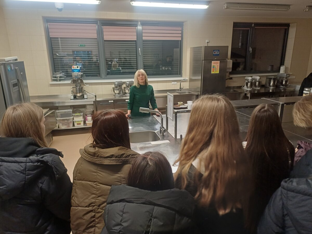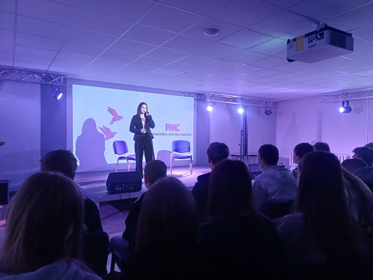 8a klasės mokiniai lankėsi Panevėžio mokymo centre (PMC), kuris 2022 metais buvo įkurtas, sujungus tris profesines mokymo įstaigas ir yra laikomas vienu didžiausiu mokymo centru šalyje. Aštuntokai apsilankė keliuose sektoriniuose praktinio mokymo centruose, susipažino su įvairiomis profesijomis ir gimnazijų mokiniams siūlomais profesinio mokymo programos moduliais.