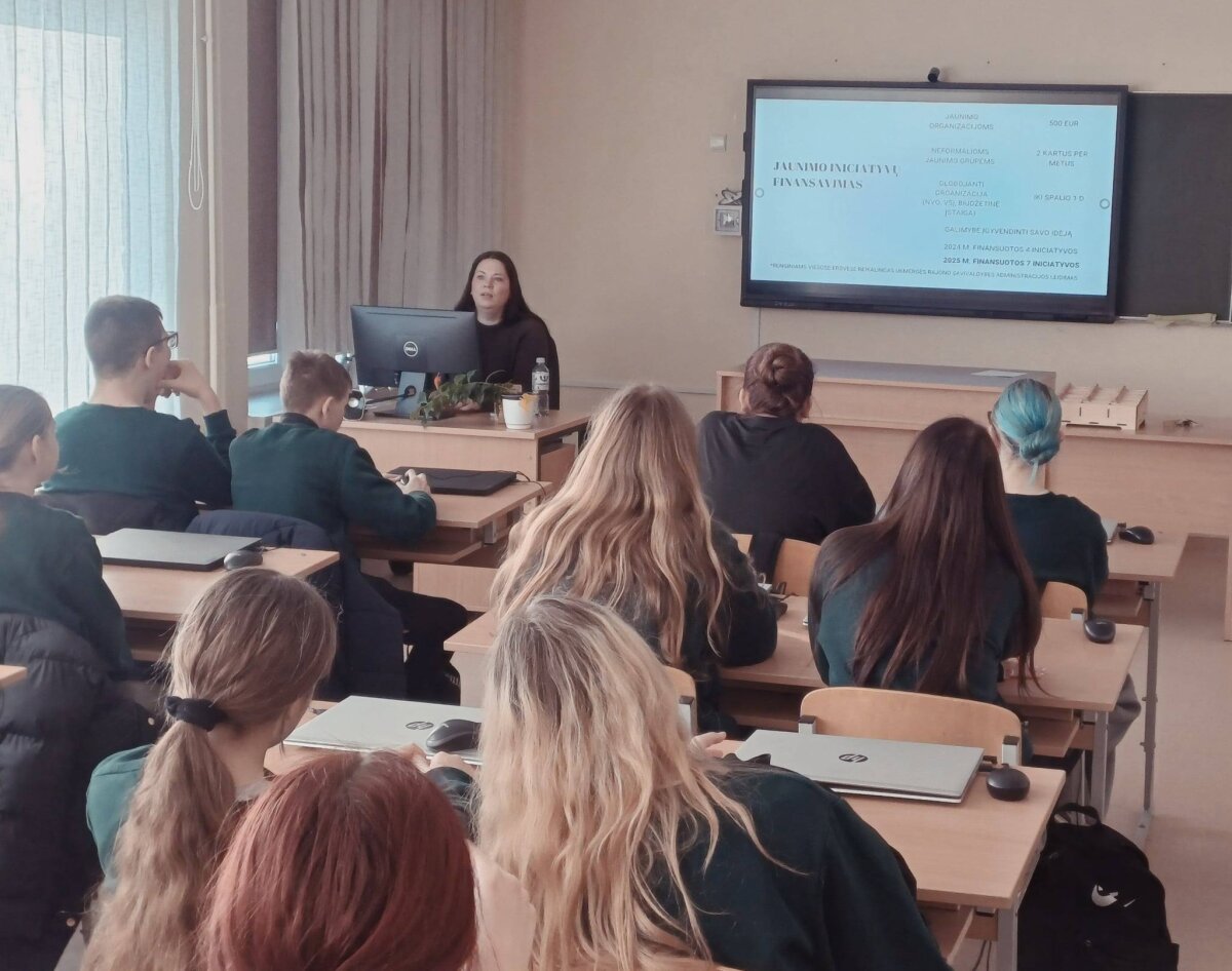 Viešnia aštuntokams papasakojo apie Jaunimo reikalų tarybą, jaunimui skirtas laisvalaikio veiklas mieste, savanorystės ir darbo vasarą programas. Nemažai informacijos suteikė ir apie jaunimo iniciatyvų programą.