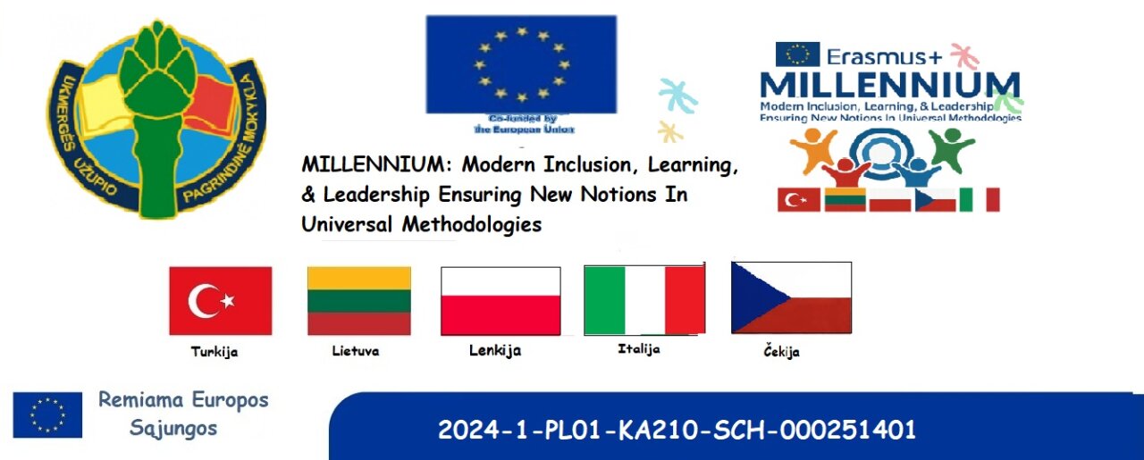 Erasmus+ projektas „MILLENNIUM: Modern Inclusion, Learning, & Leadership Ensuring New Notions In Universal Methodologies“. 2024–2026